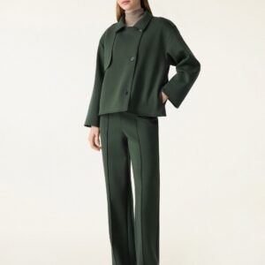 2-teiliges Set: Mantel mit wandelbarem Kragen und Knöpfen & Komforthose mit Bauchkontrolle