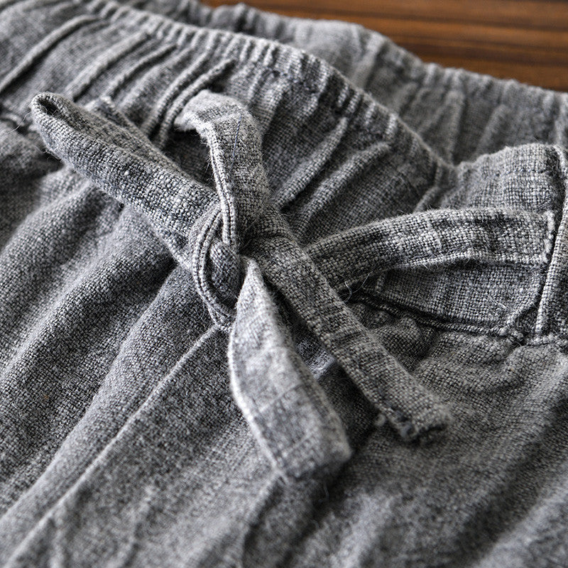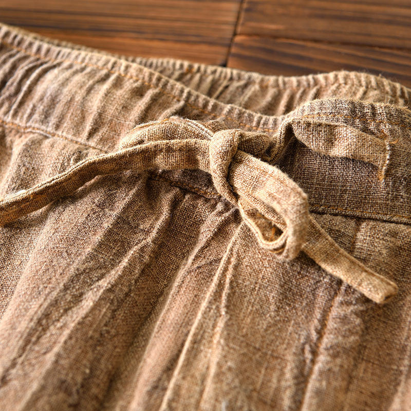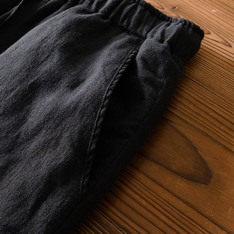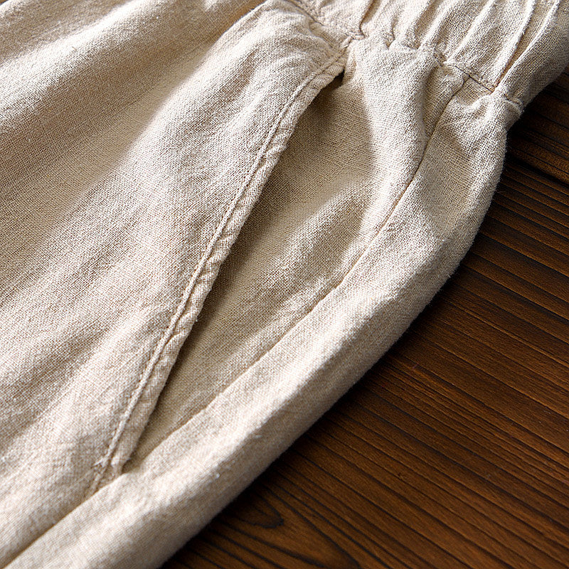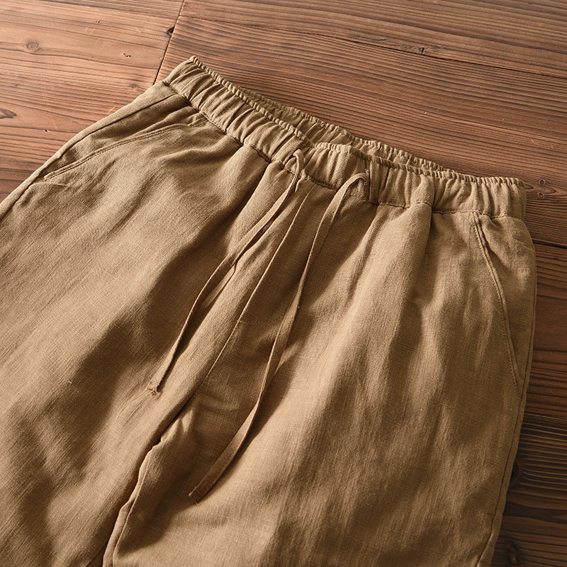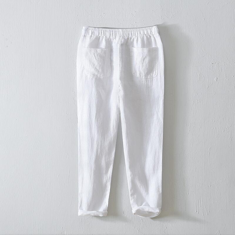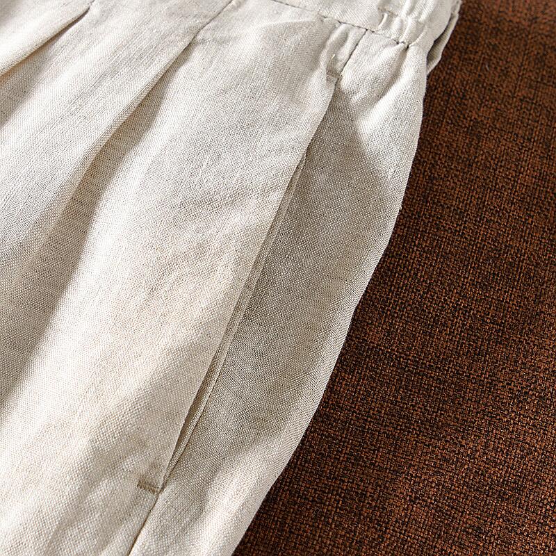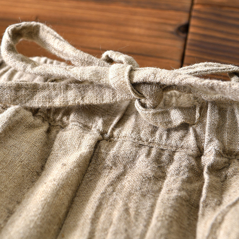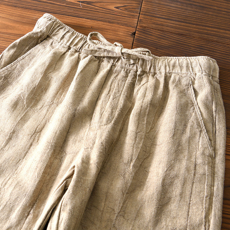 Pure Linen Plain Drawstring Casual Cropped Pants