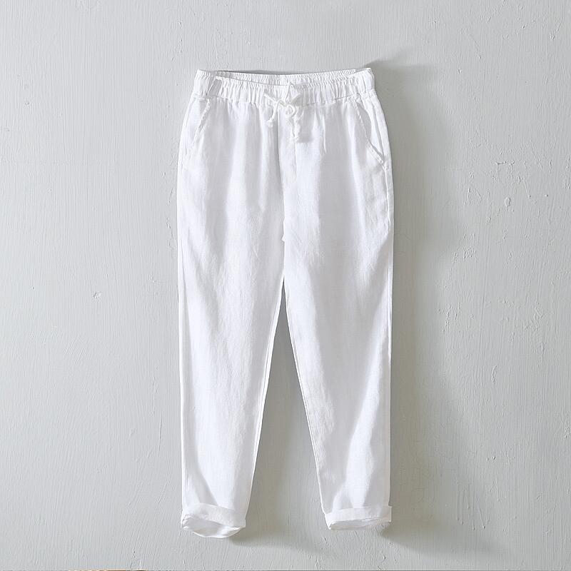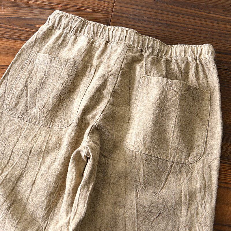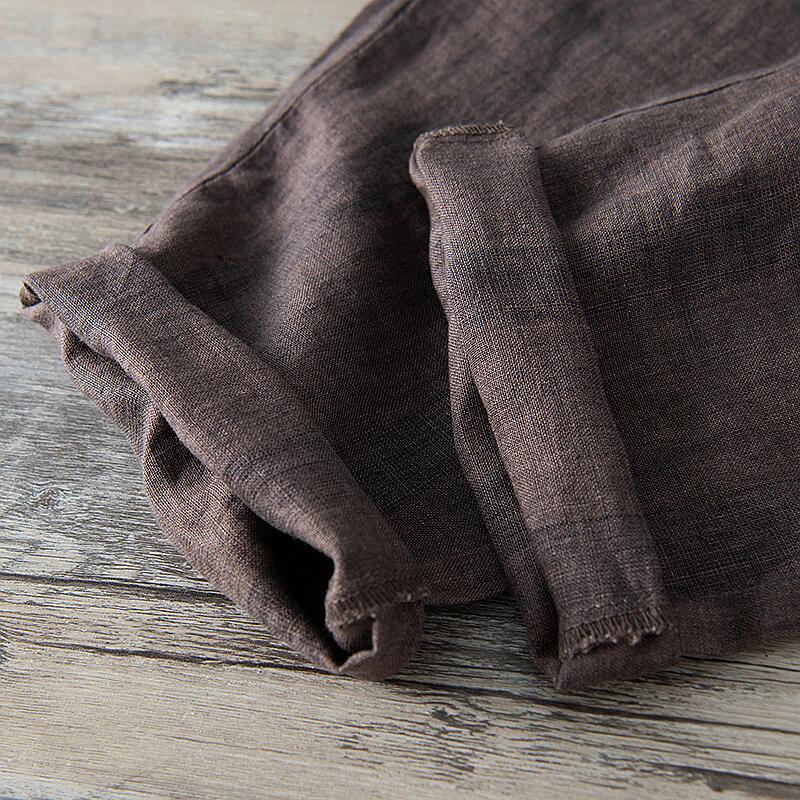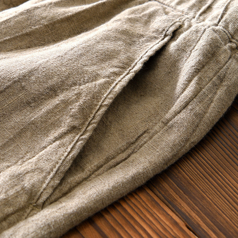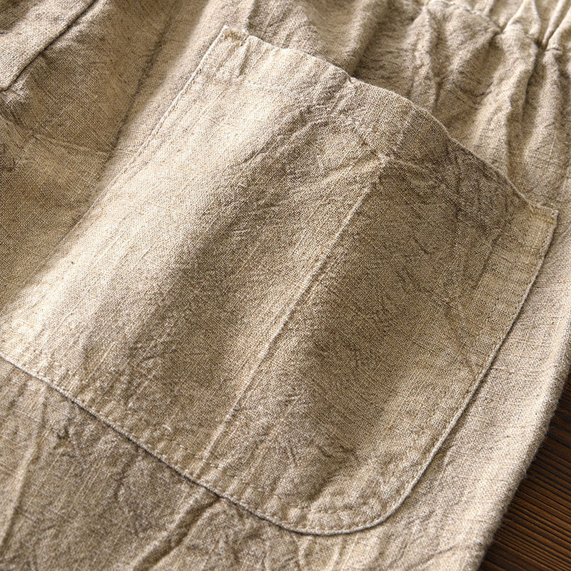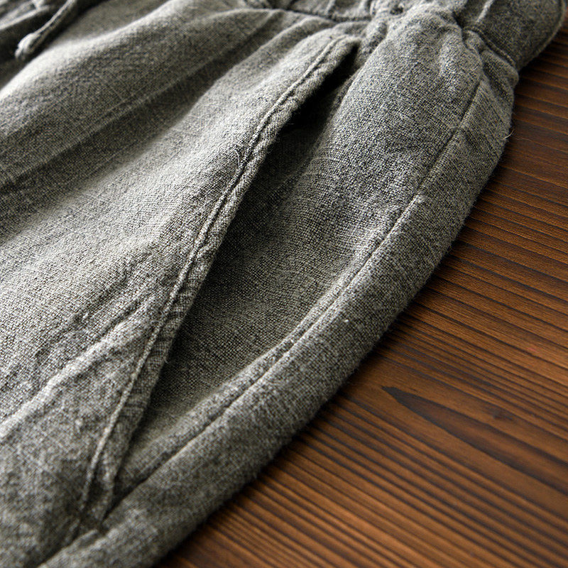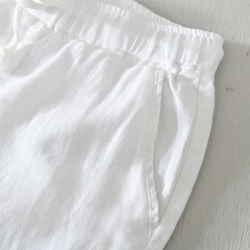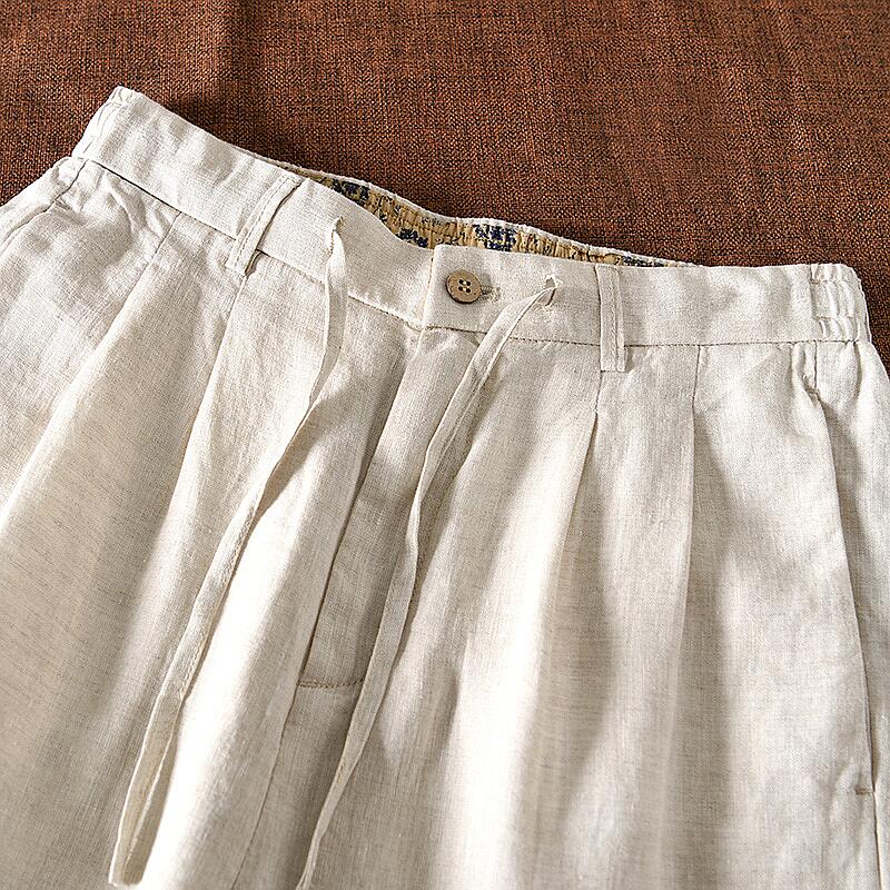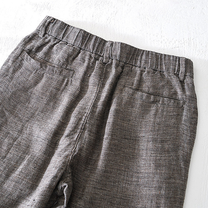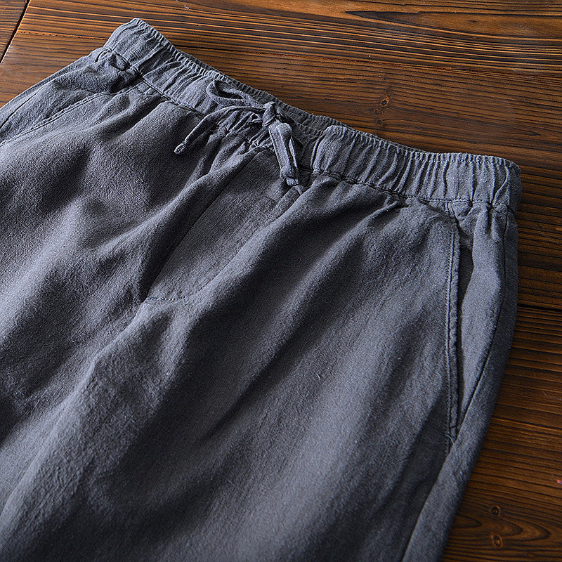 Pure Linen Plain Drawstring Casual Cropped Pants