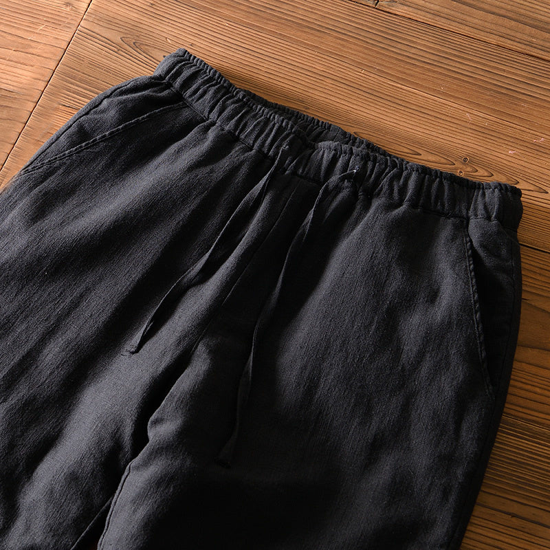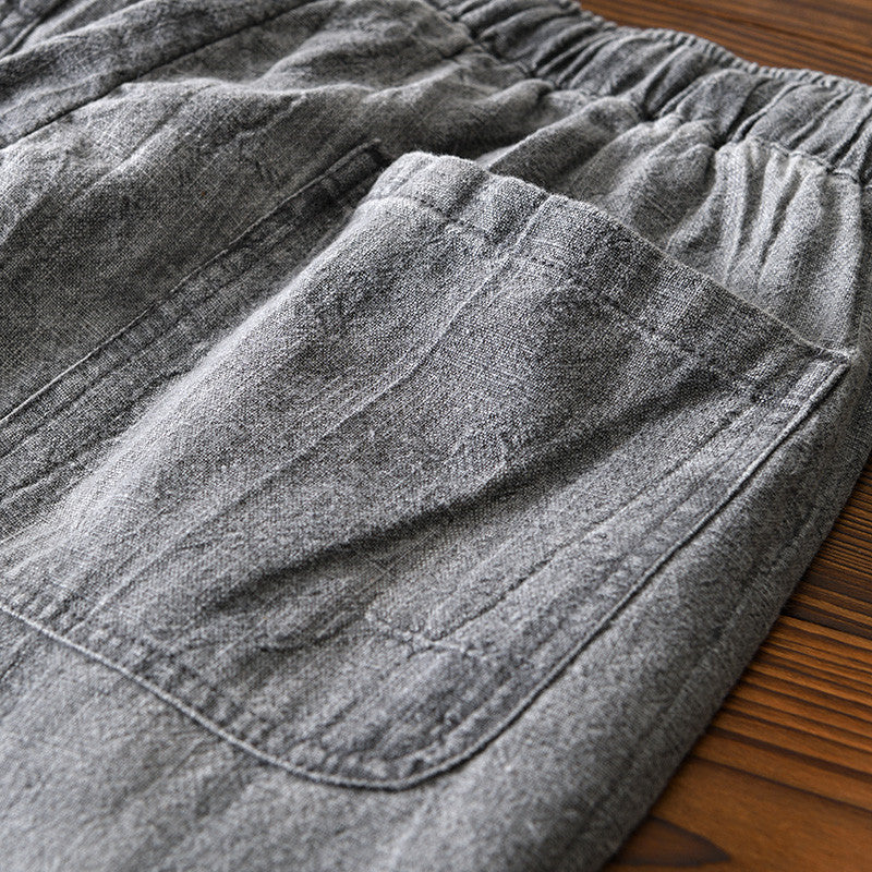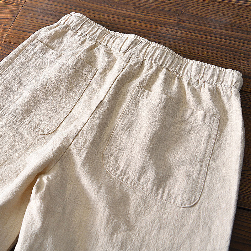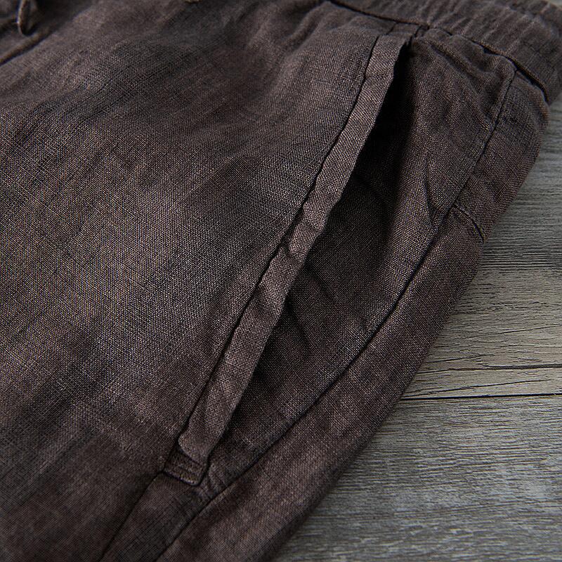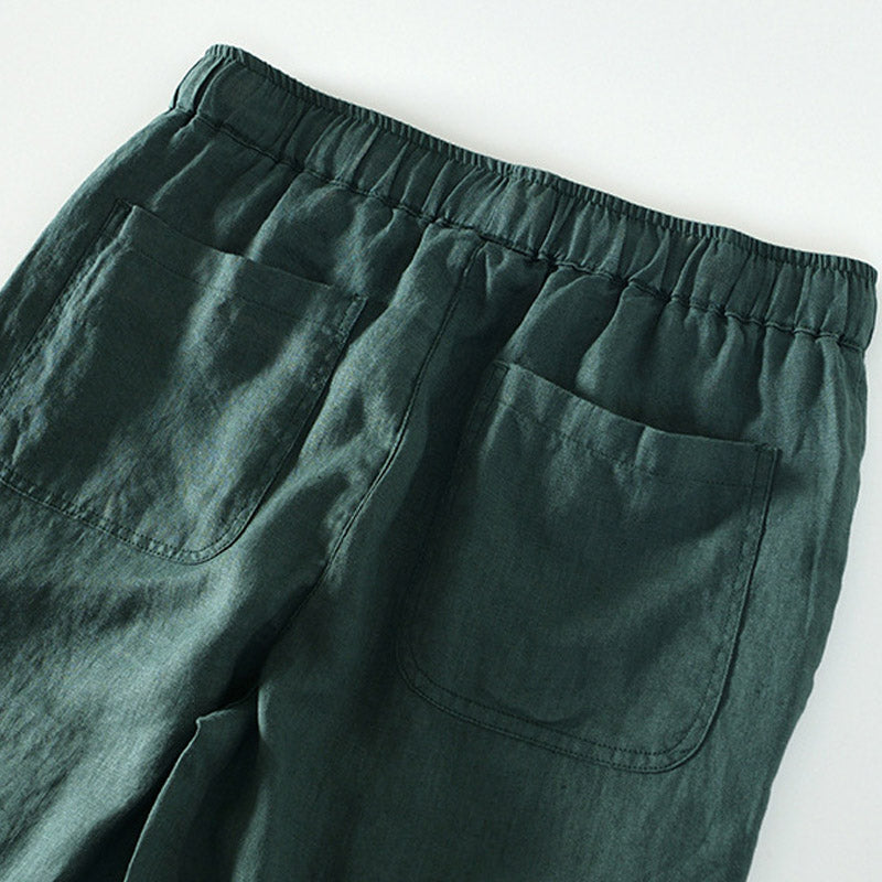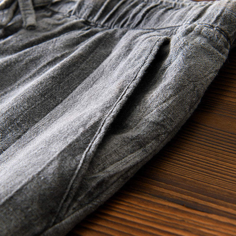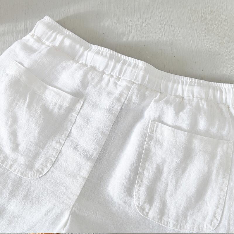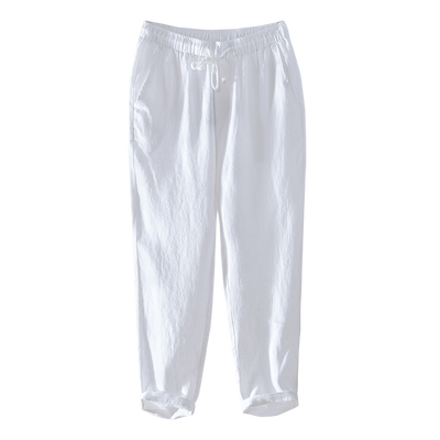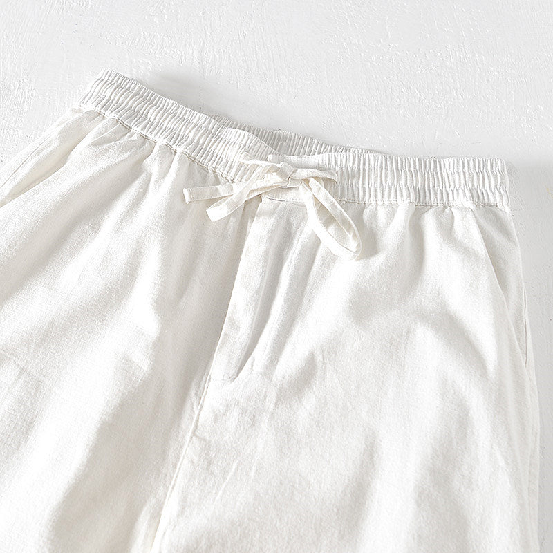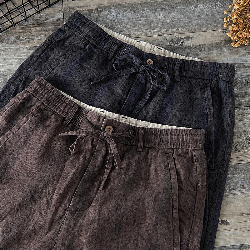 Pure Linen Plain Drawstring Casual Cropped Pants