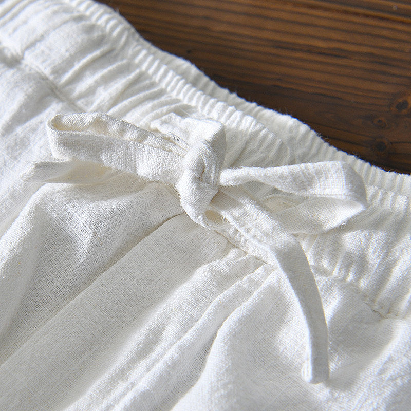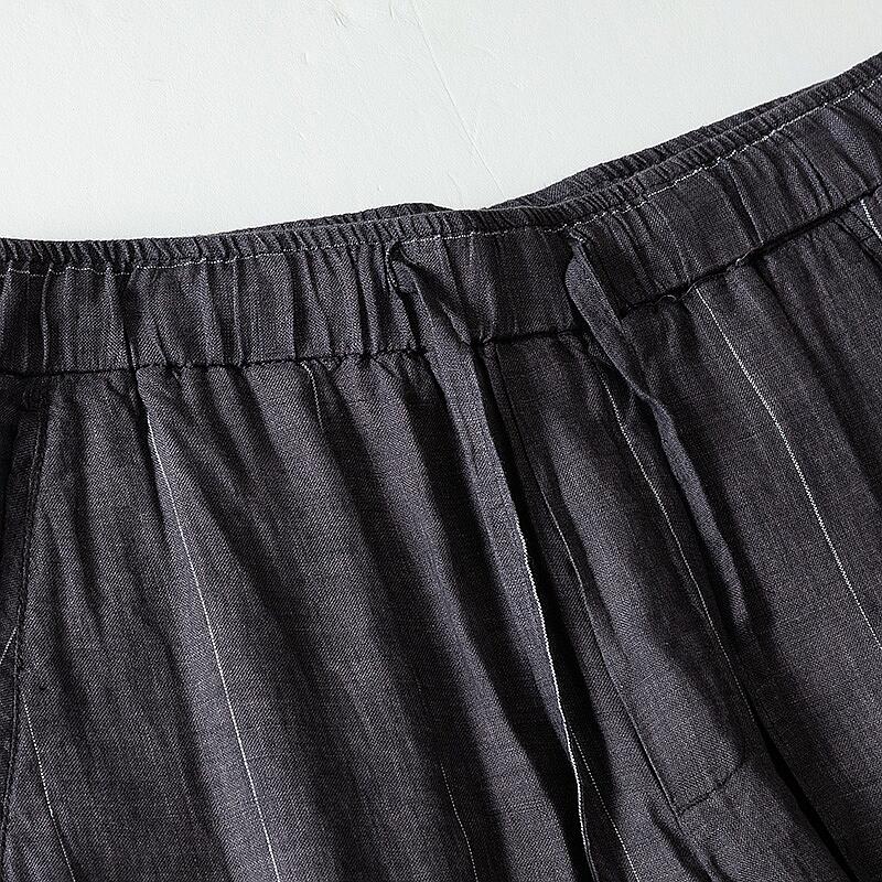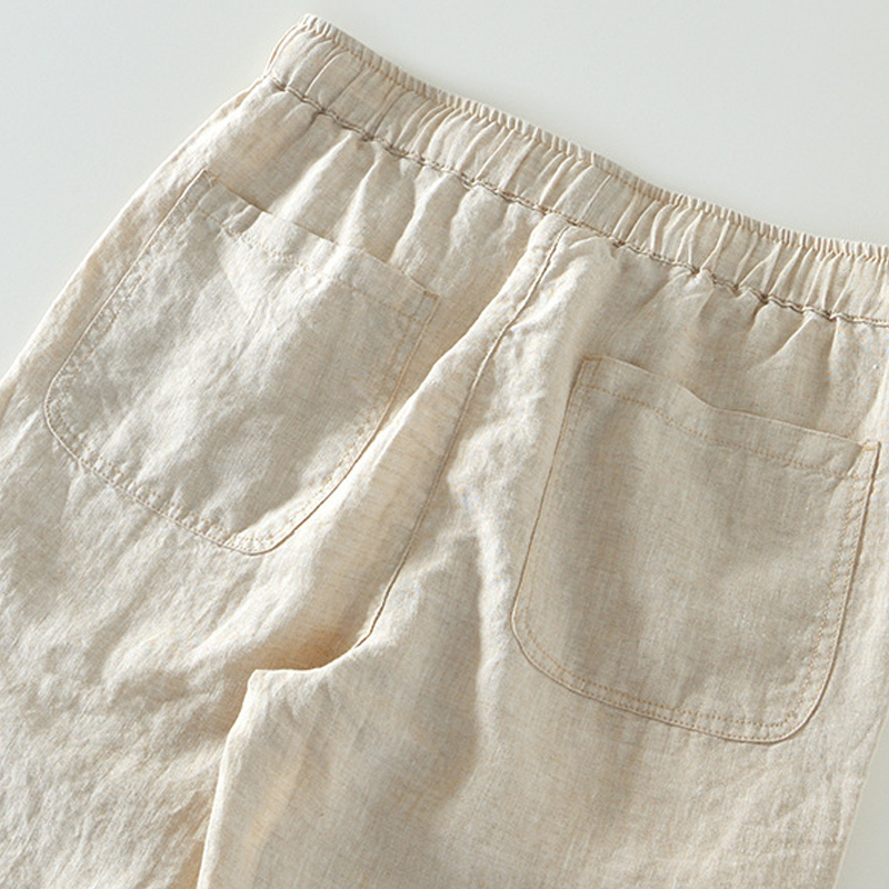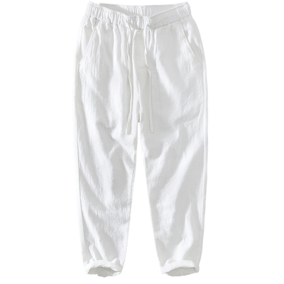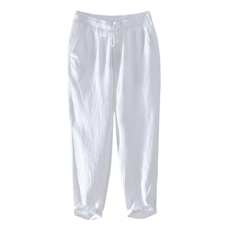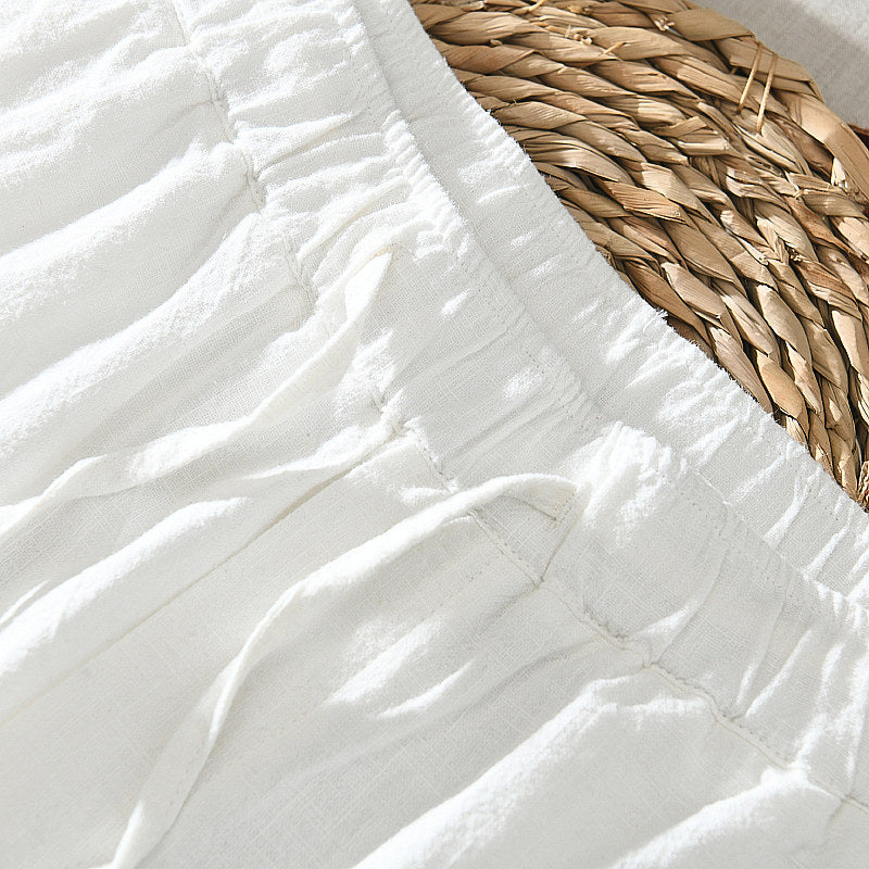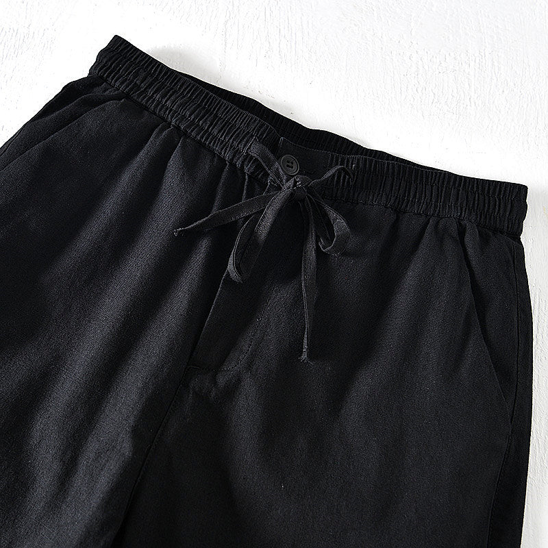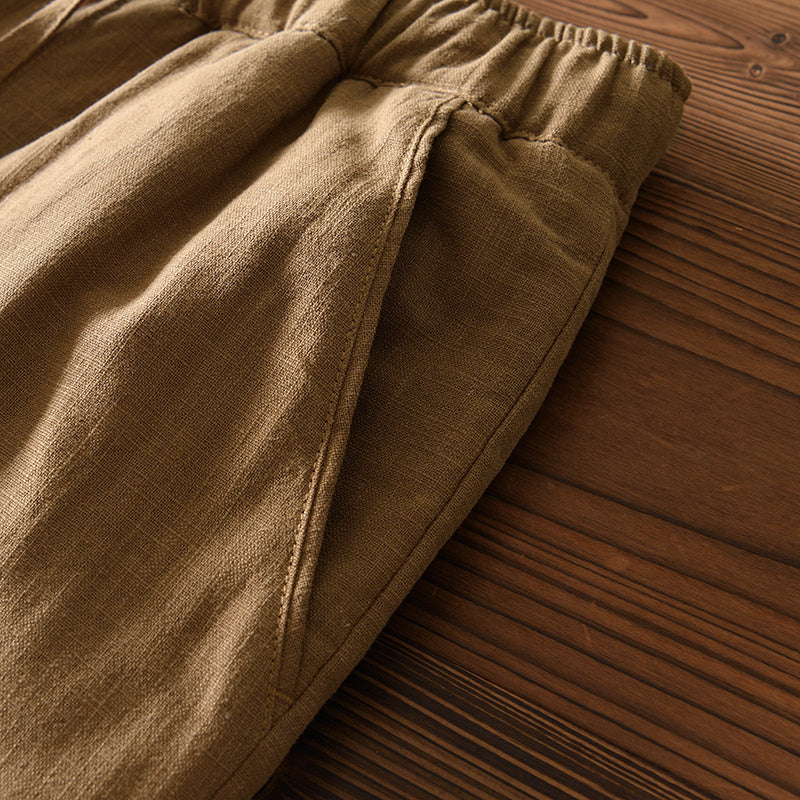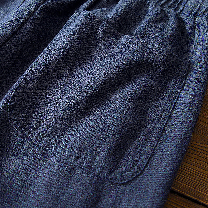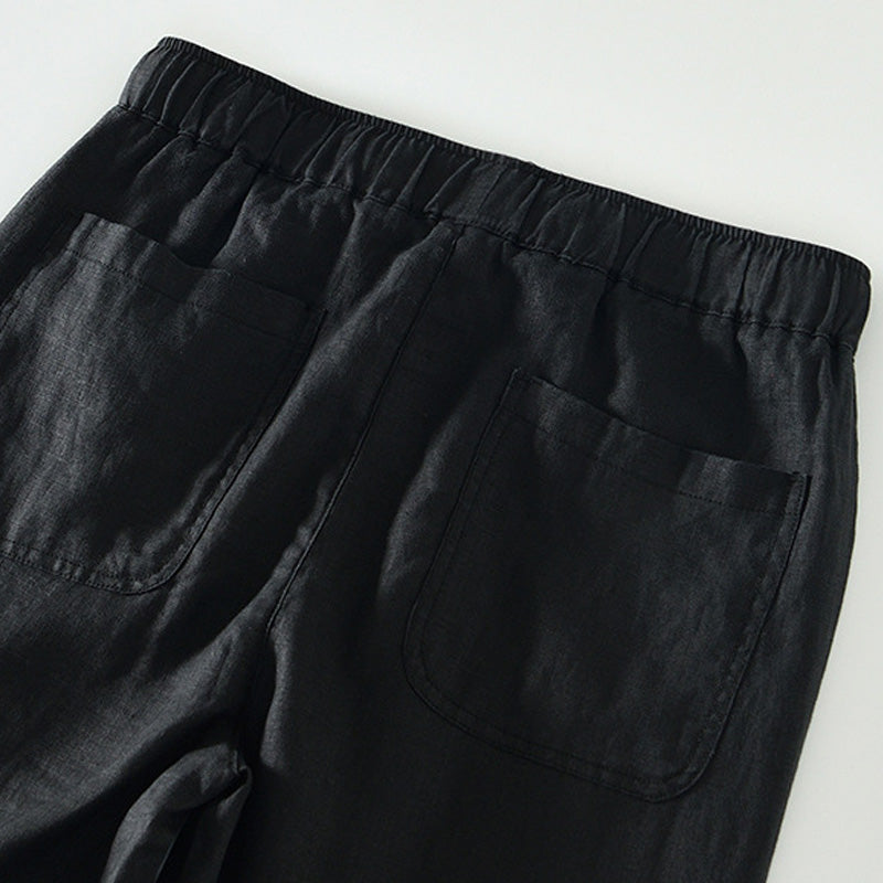 Pure Linen Plain Drawstring Casual Cropped Pants