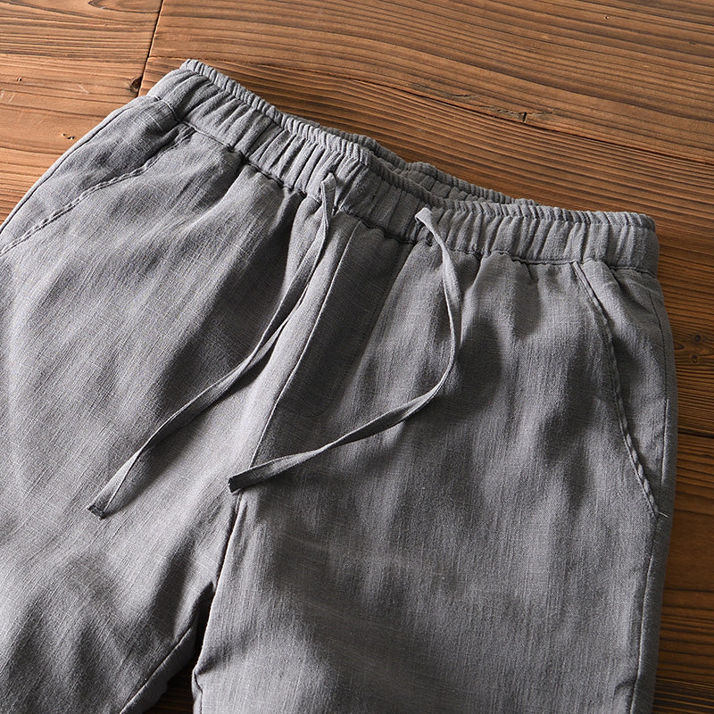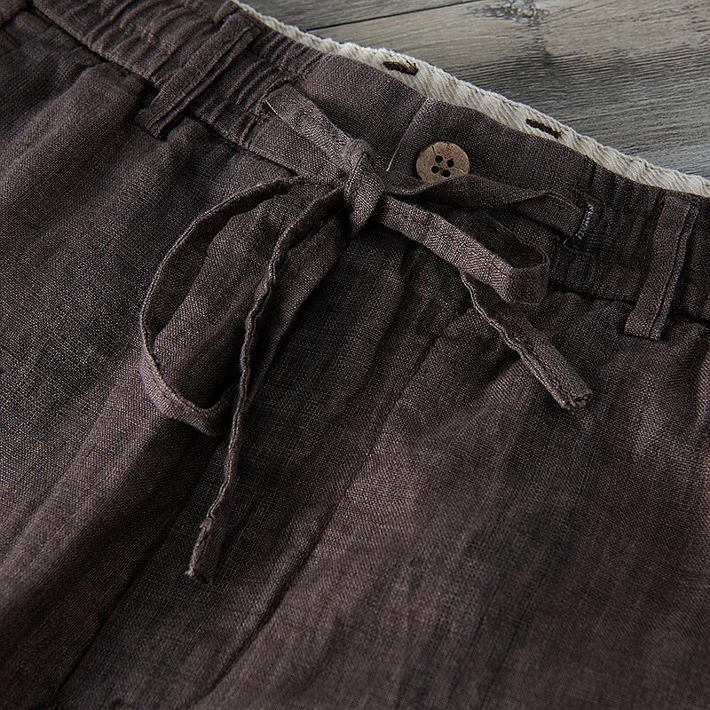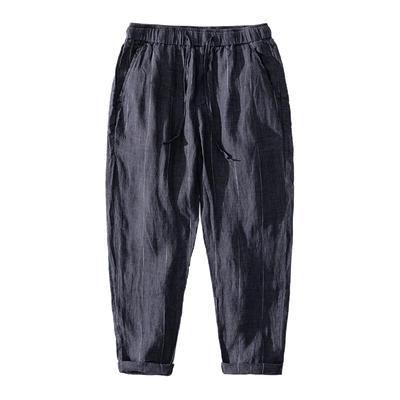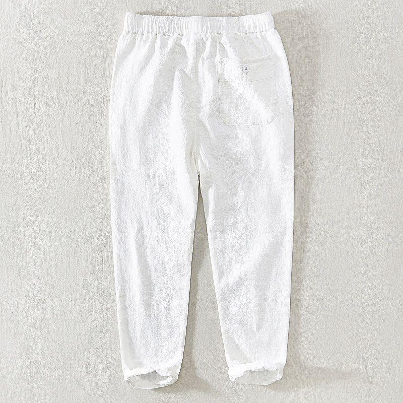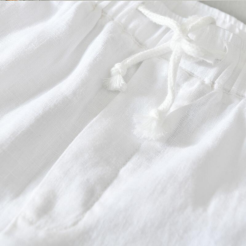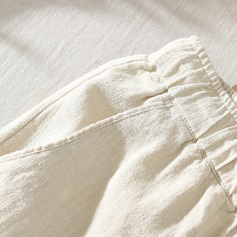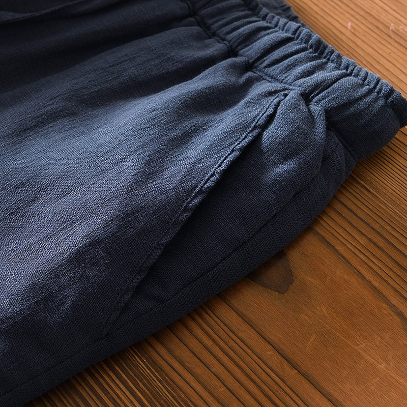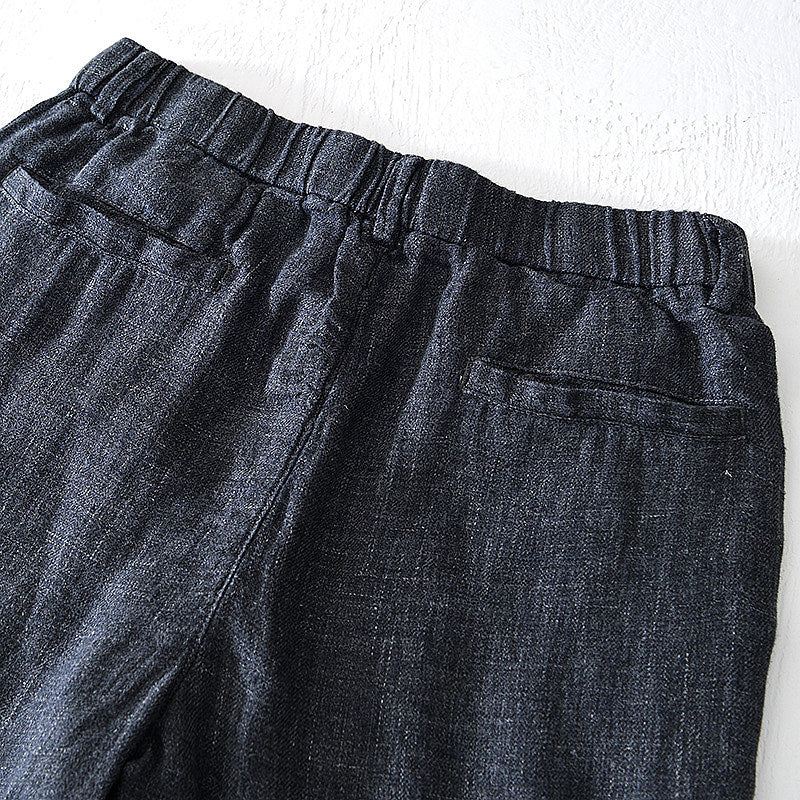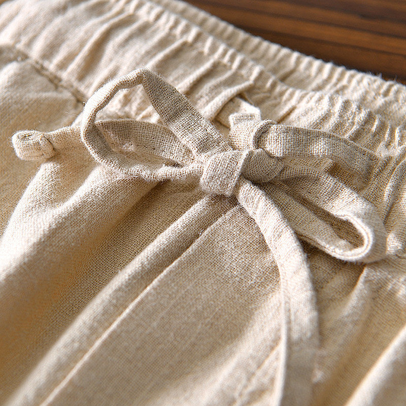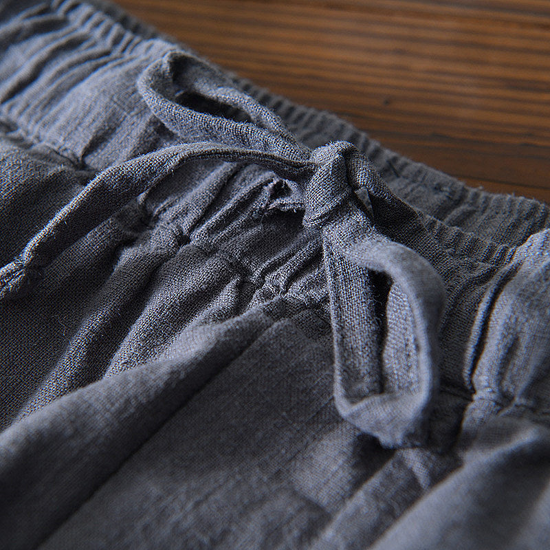 Pure Linen Plain Drawstring Casual Cropped Pants
