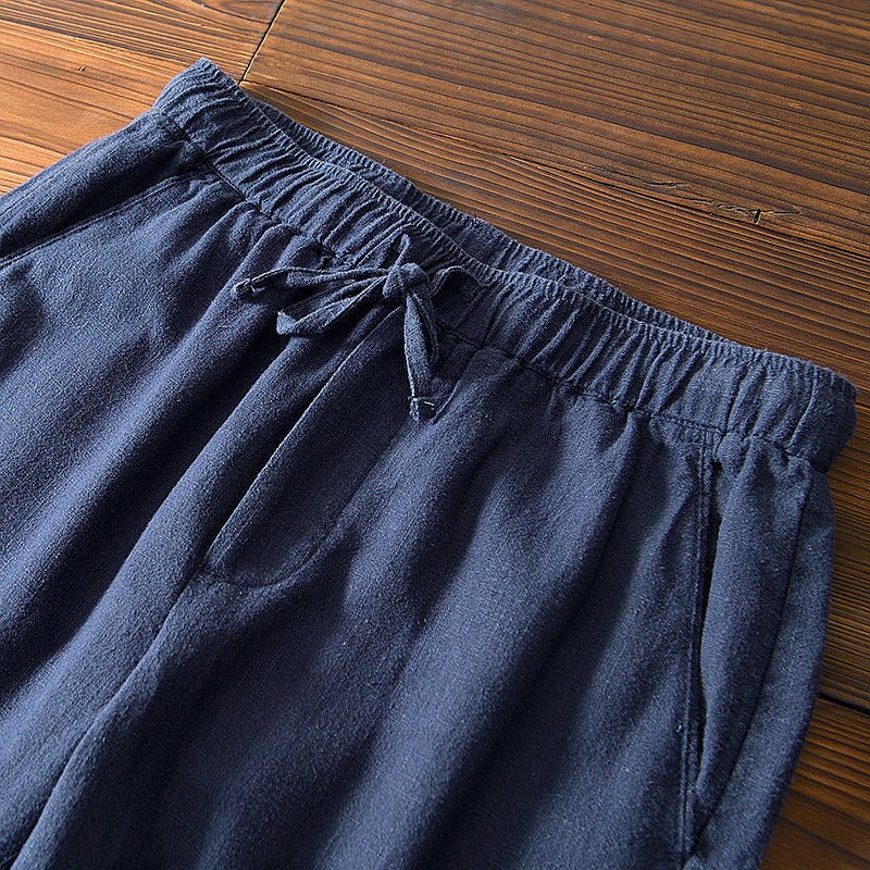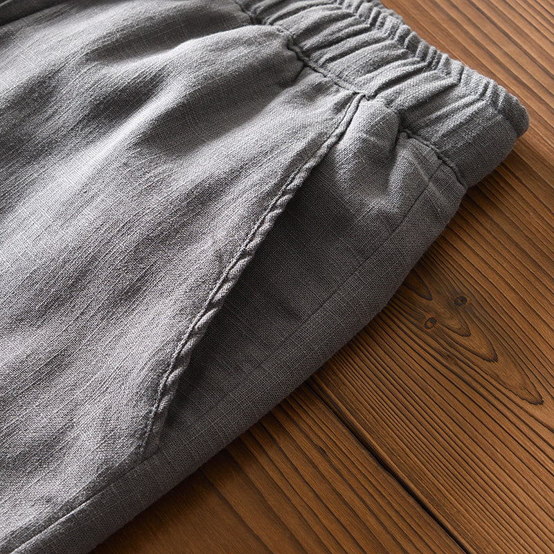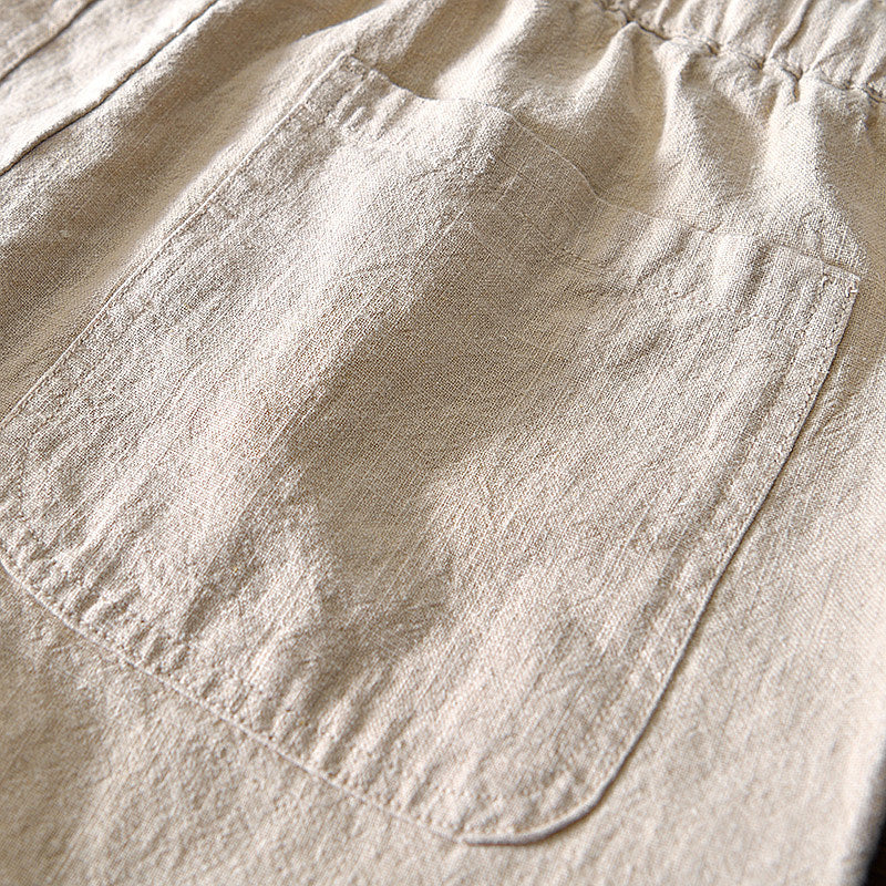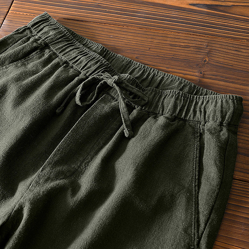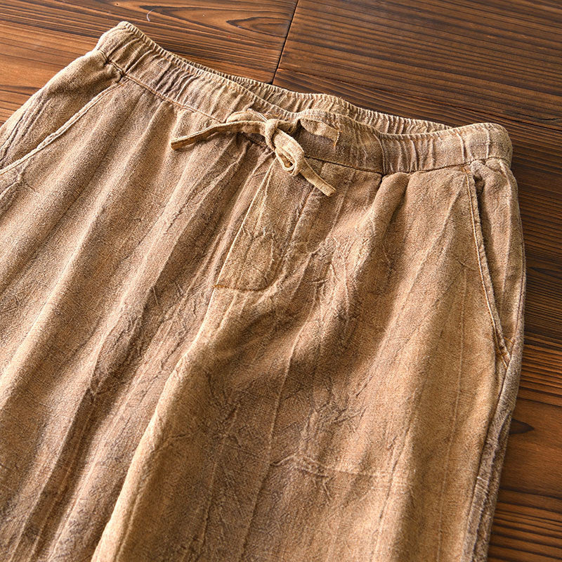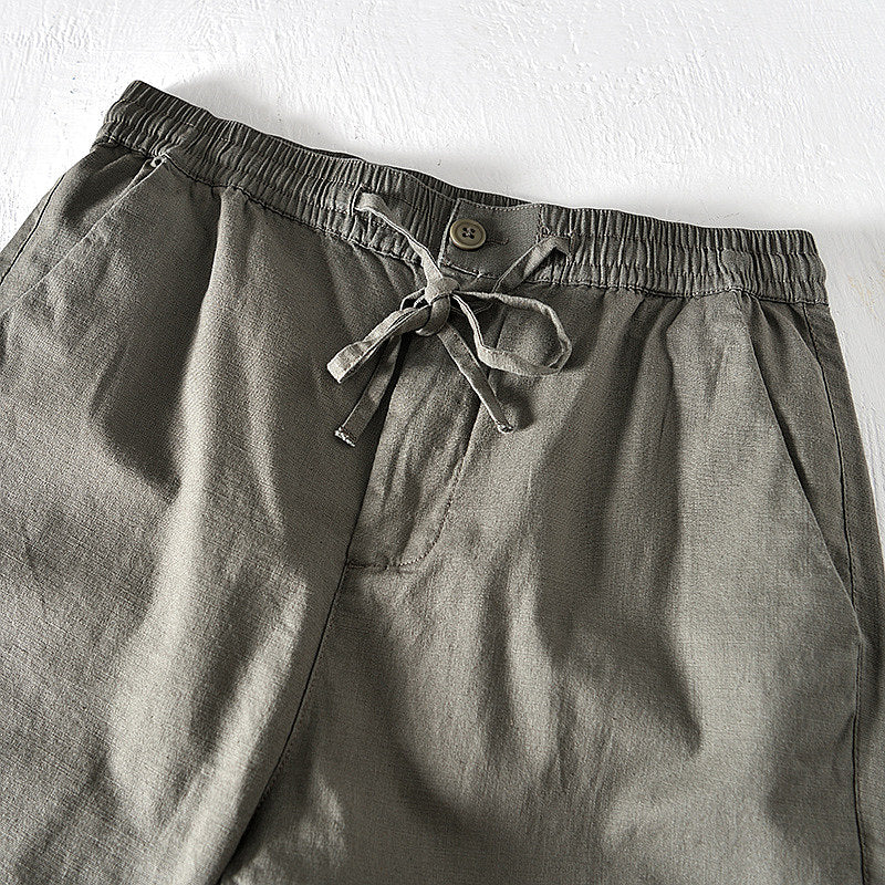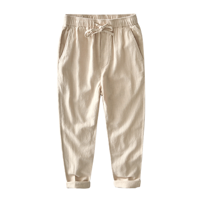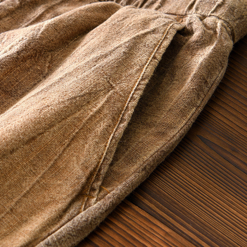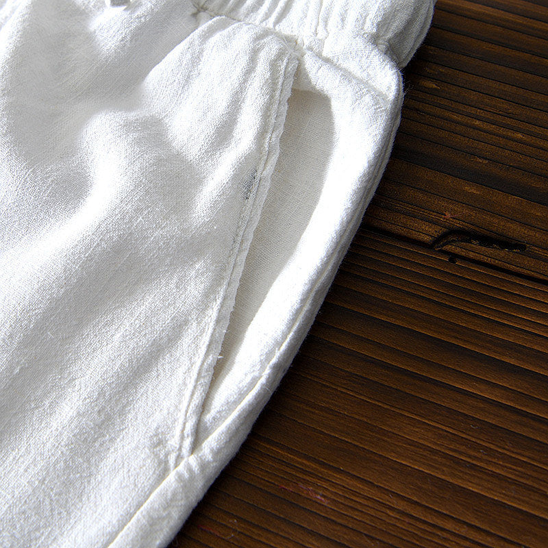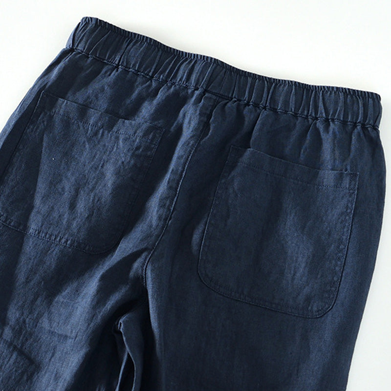 Pure Linen Plain Drawstring Casual Cropped Pants