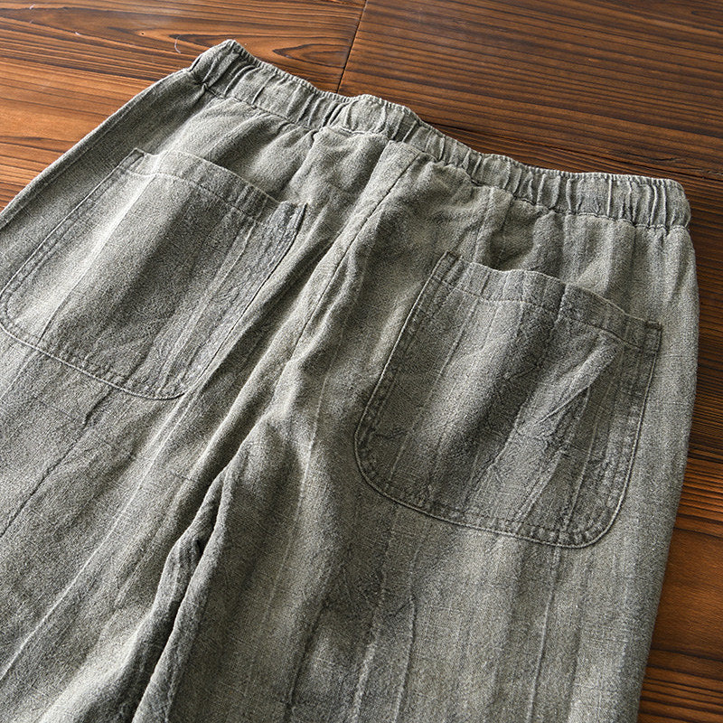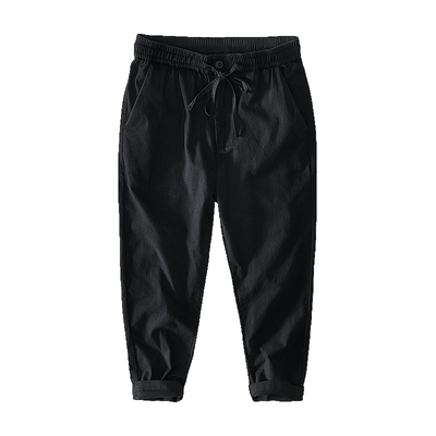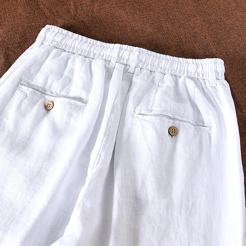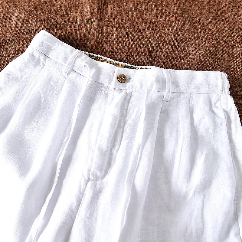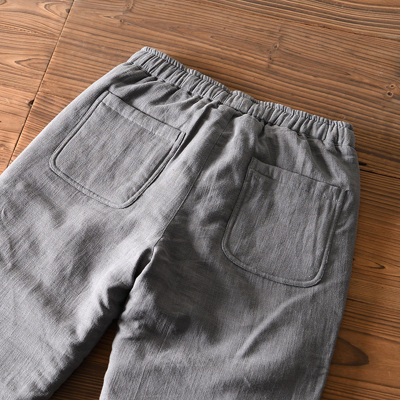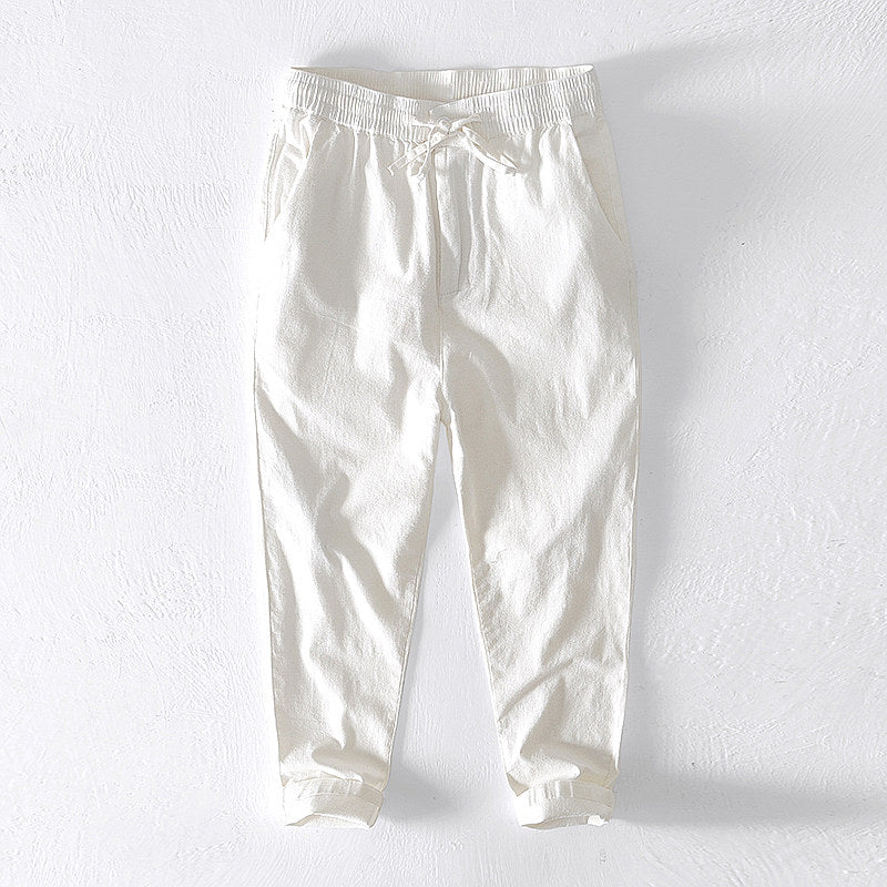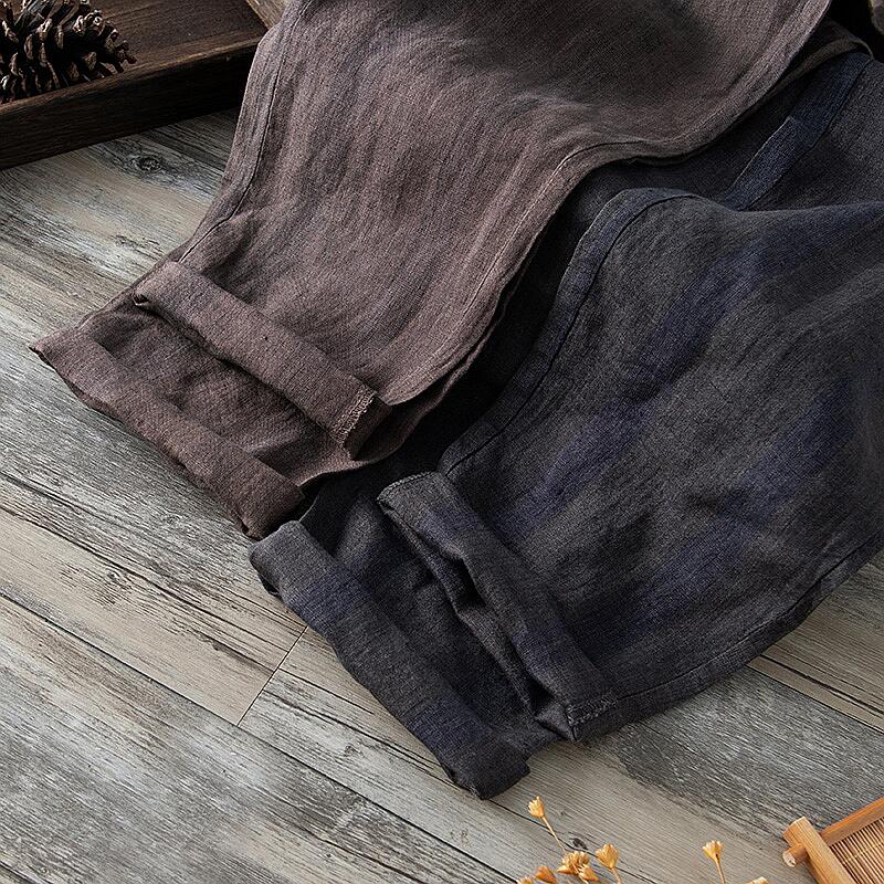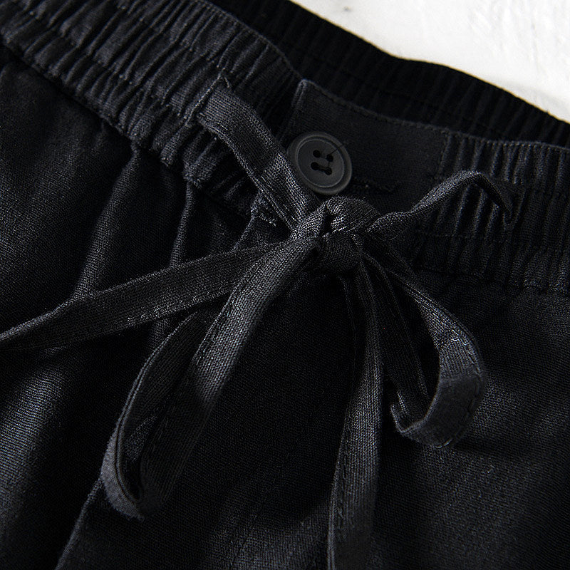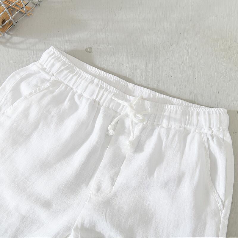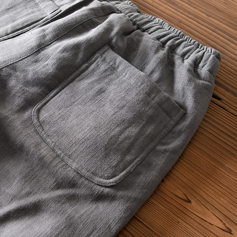 Pure Linen Plain Drawstring Casual Cropped Pants