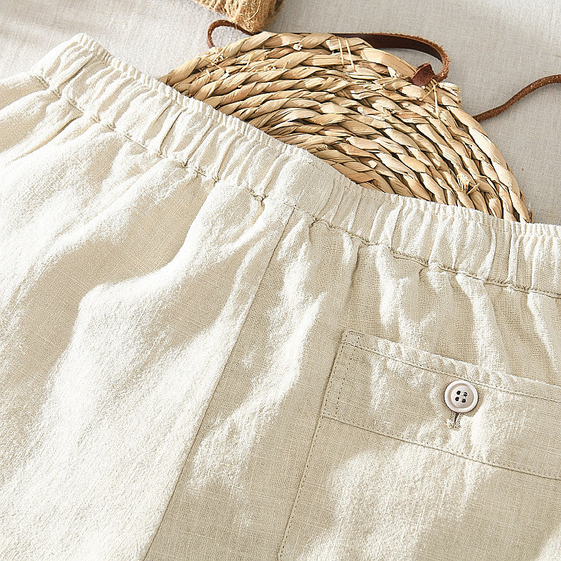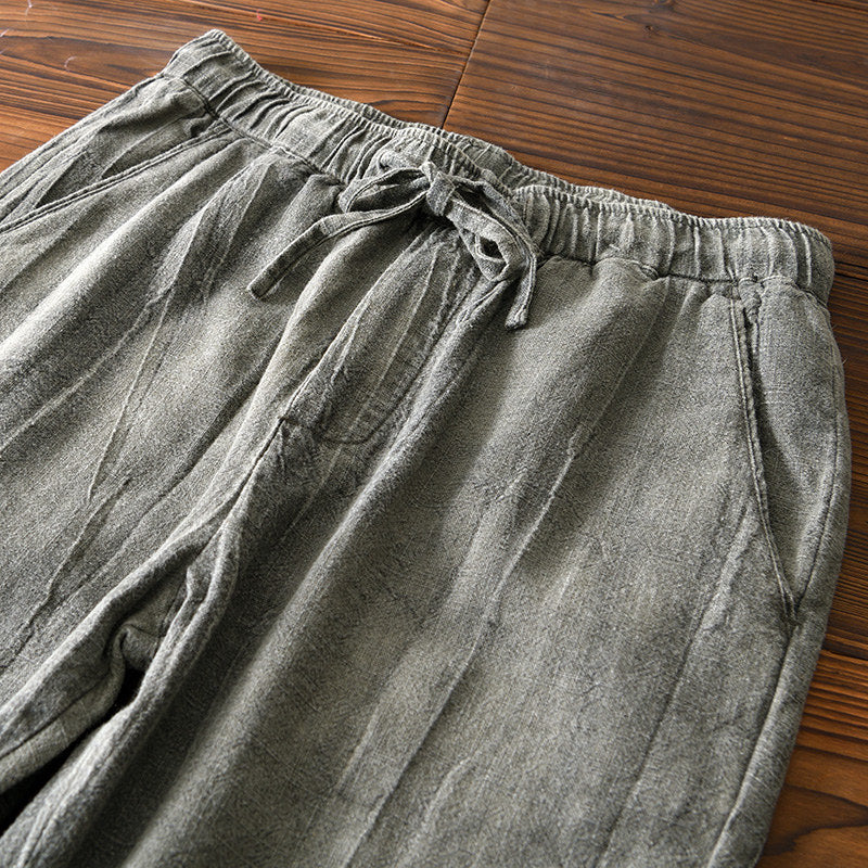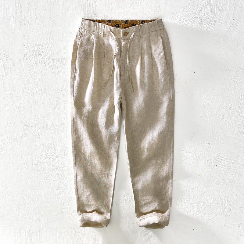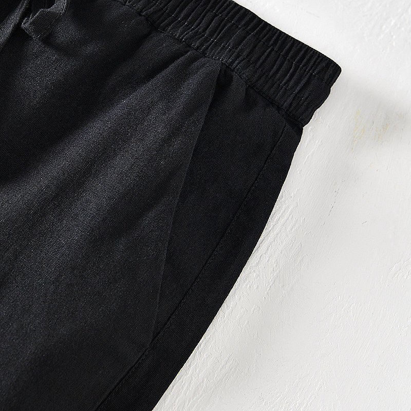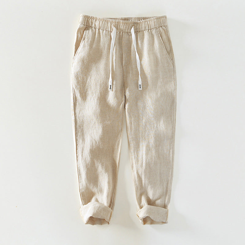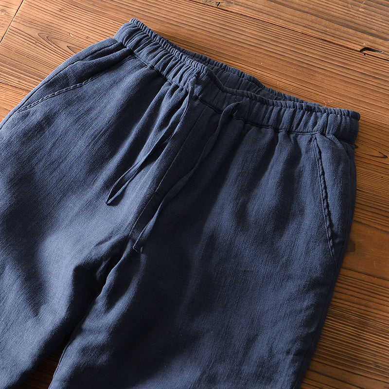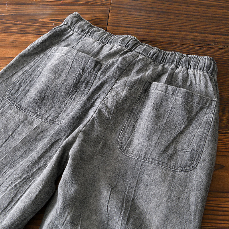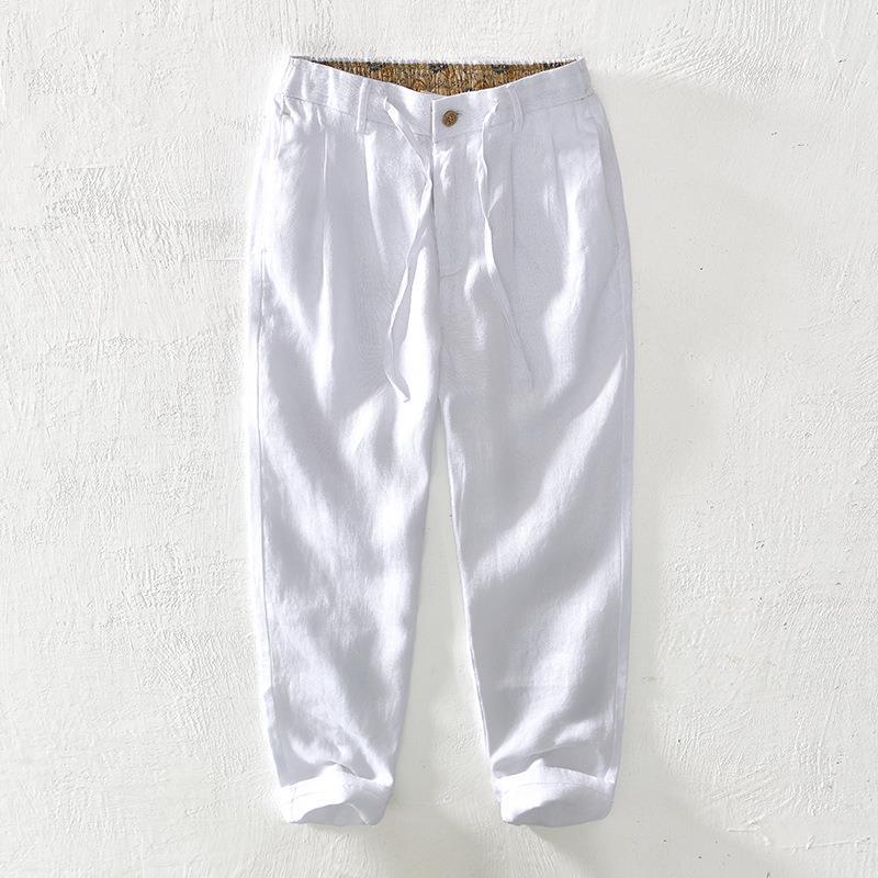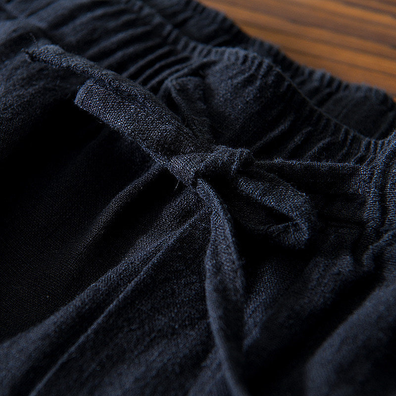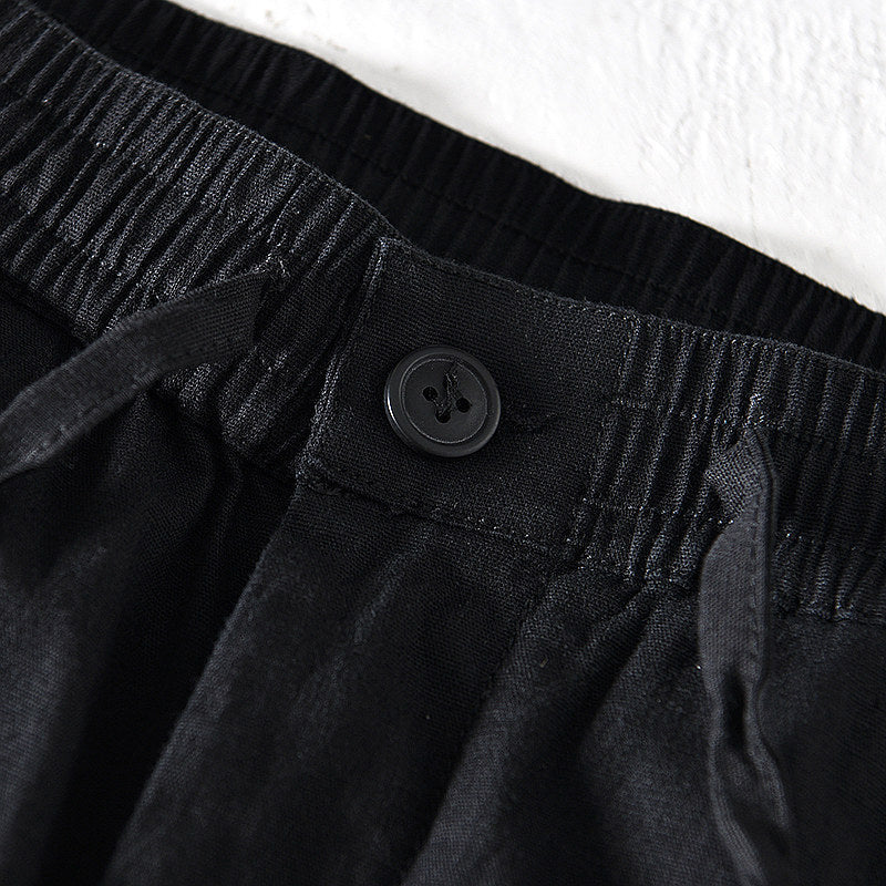 Pure Linen Plain Drawstring Casual Cropped Pants