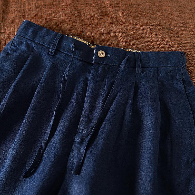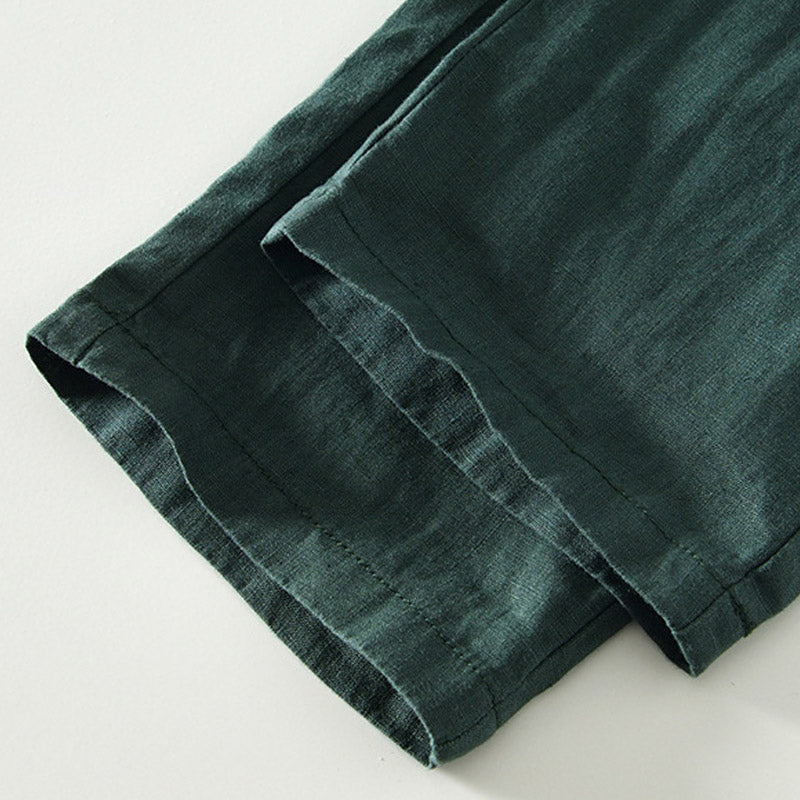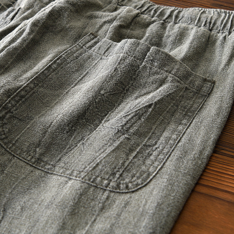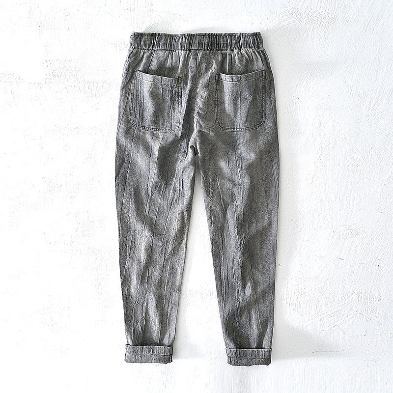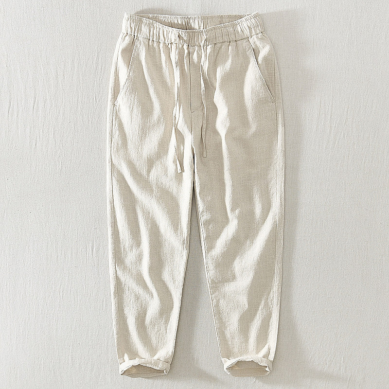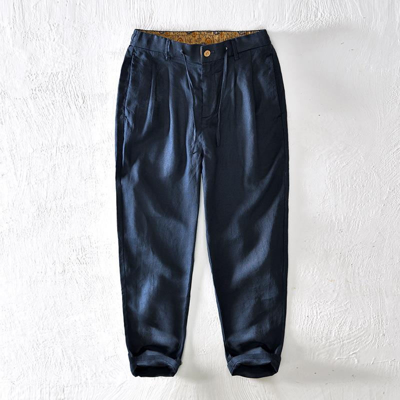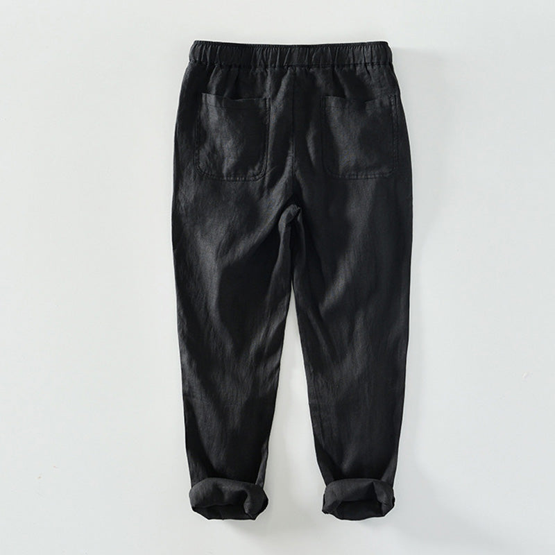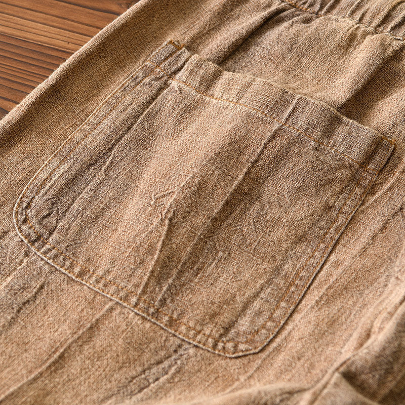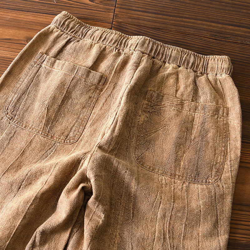 Pure Linen Plain Drawstring Casual Cropped Pants