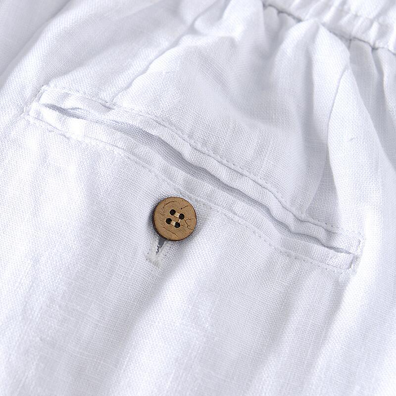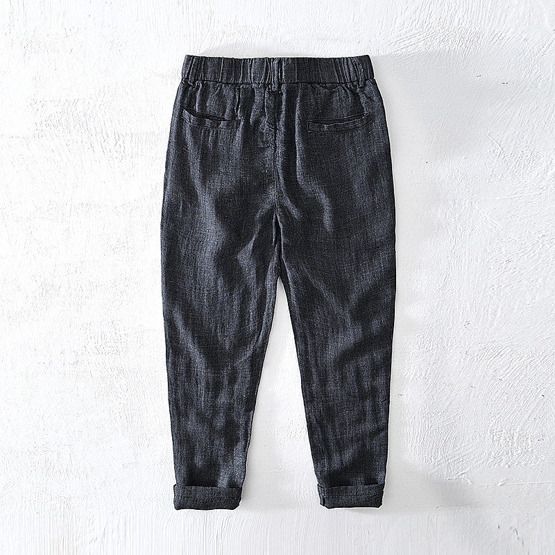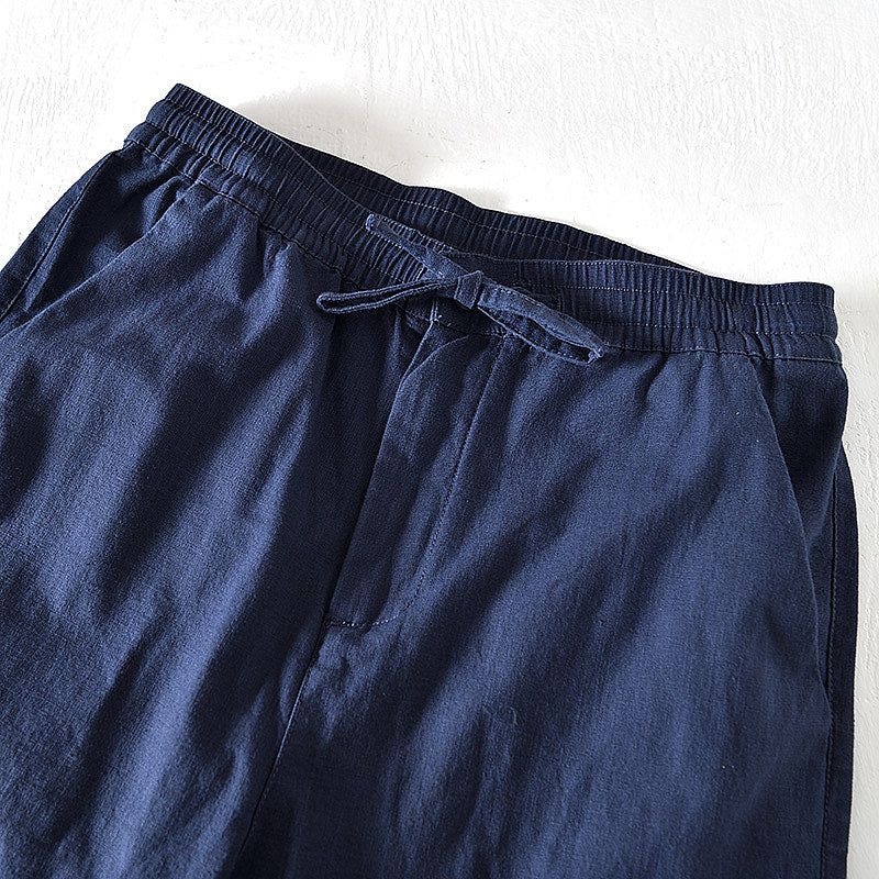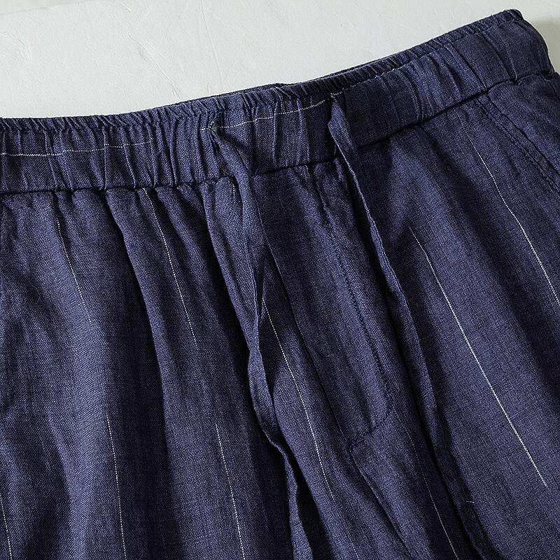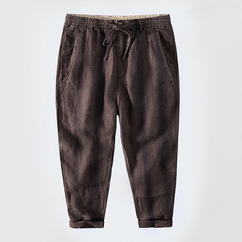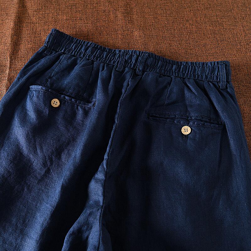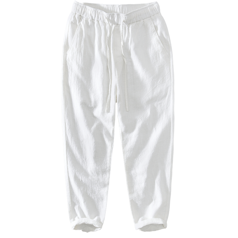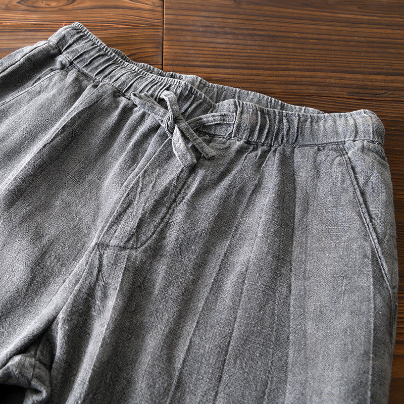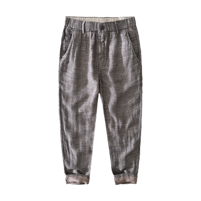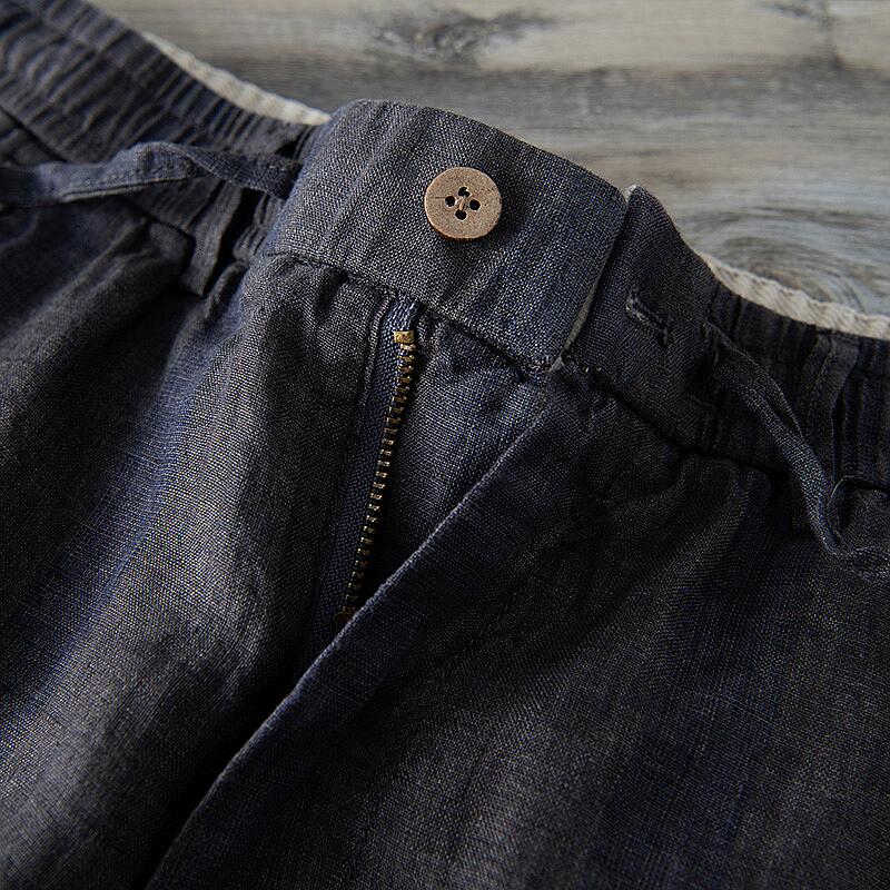 Pure Linen Plain Drawstring Casual Cropped Pants