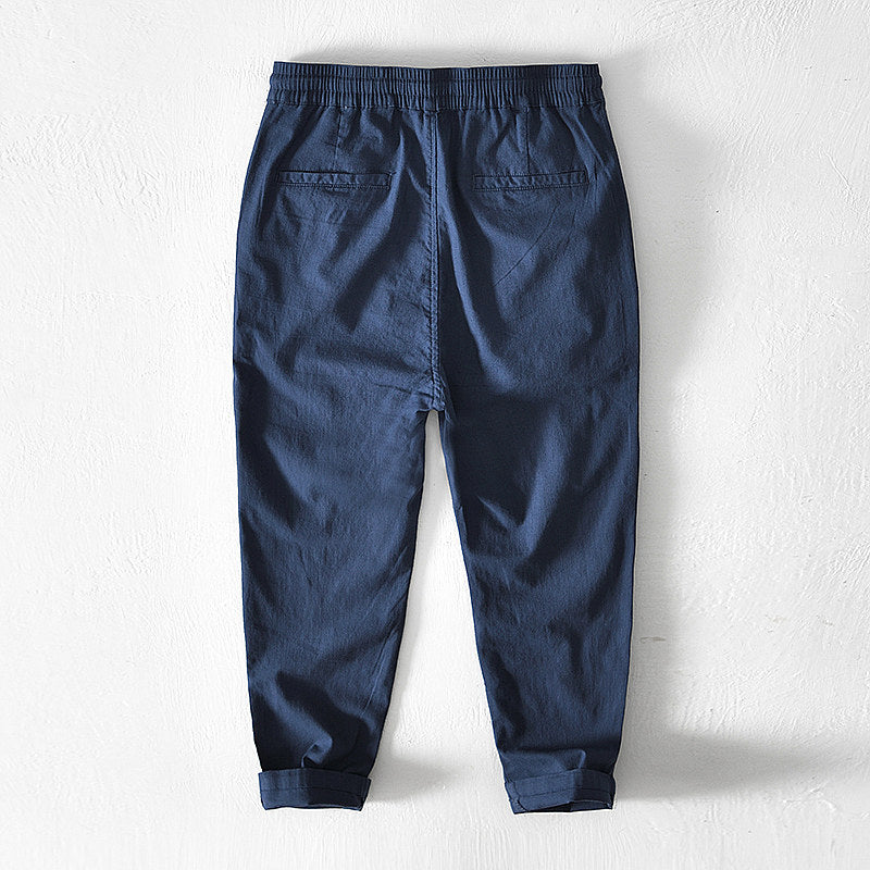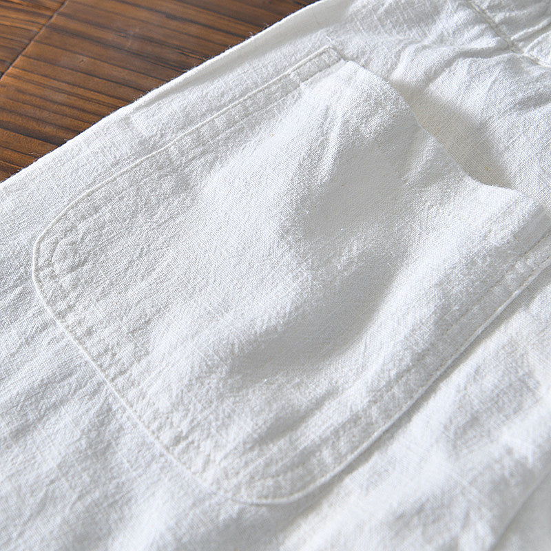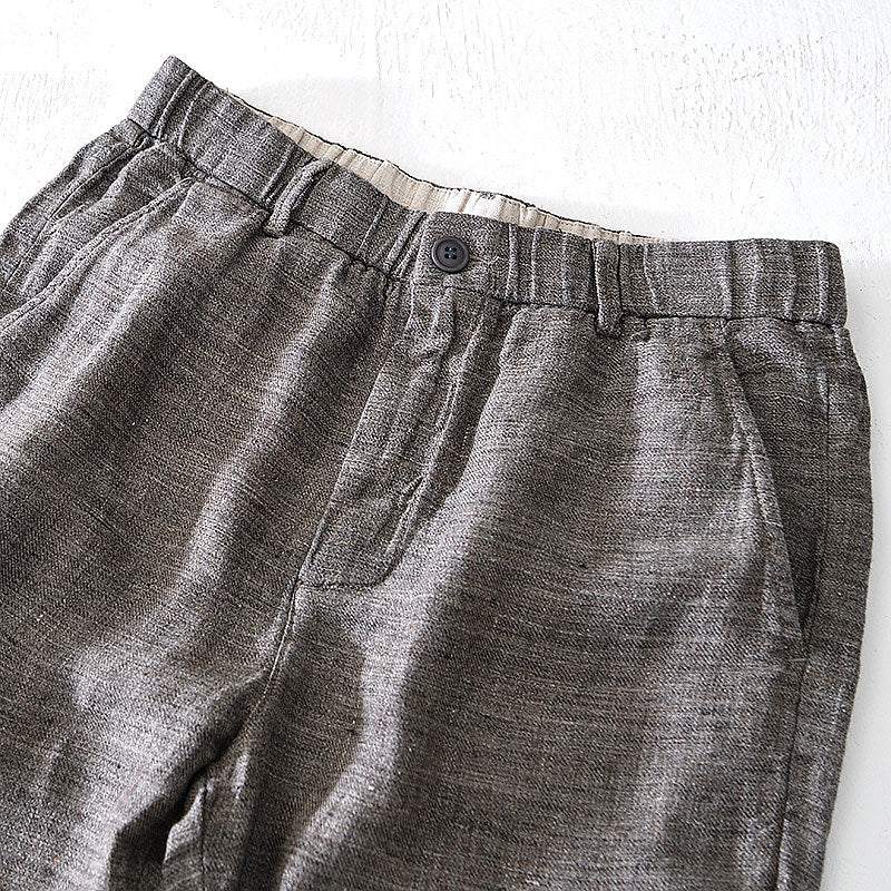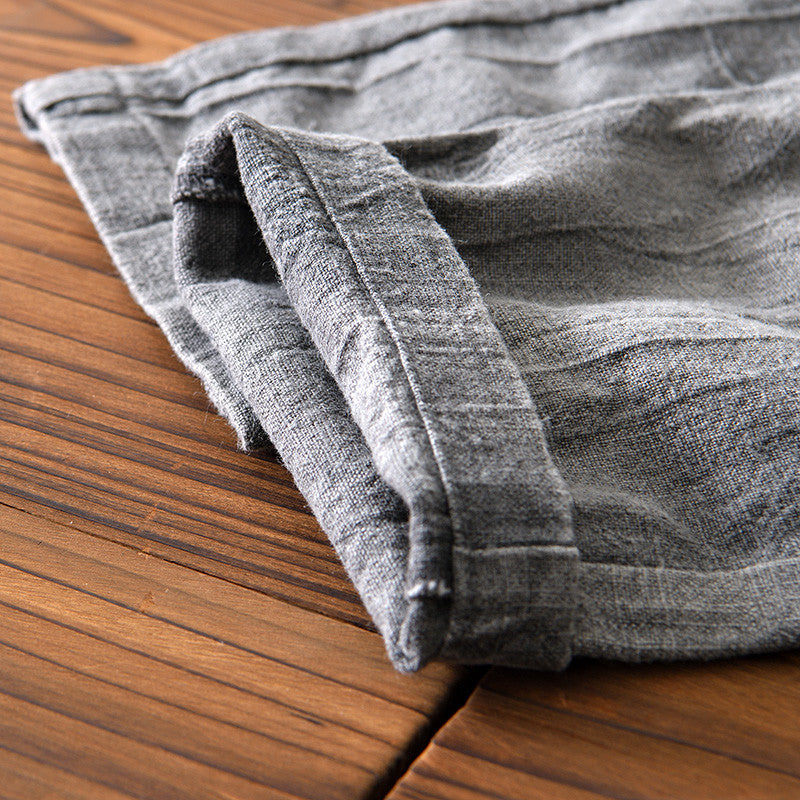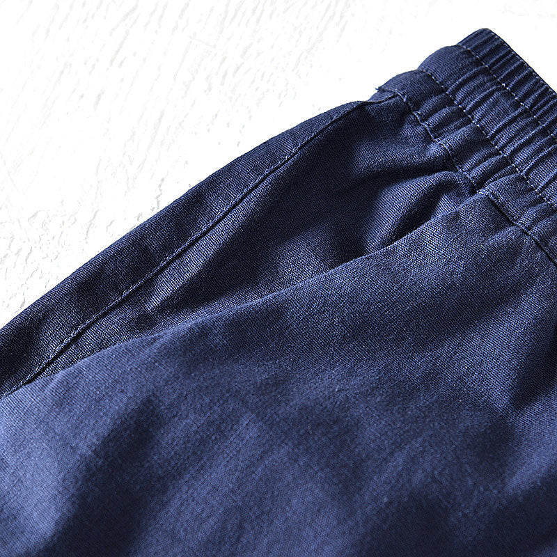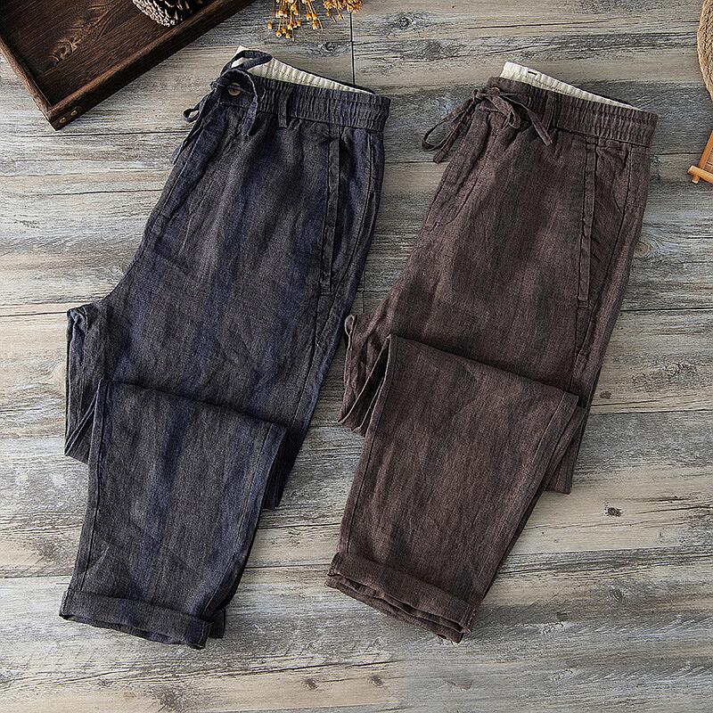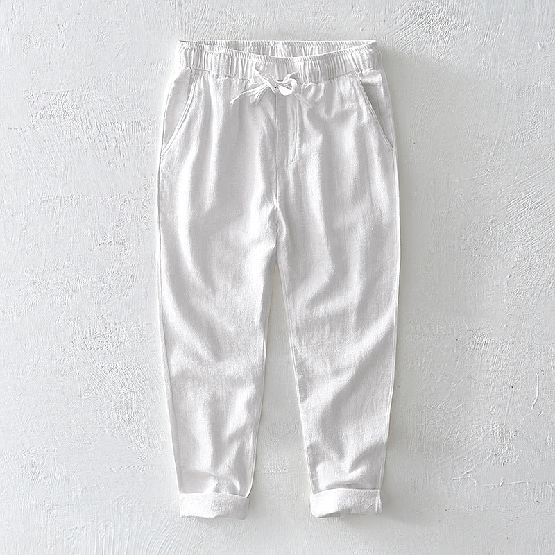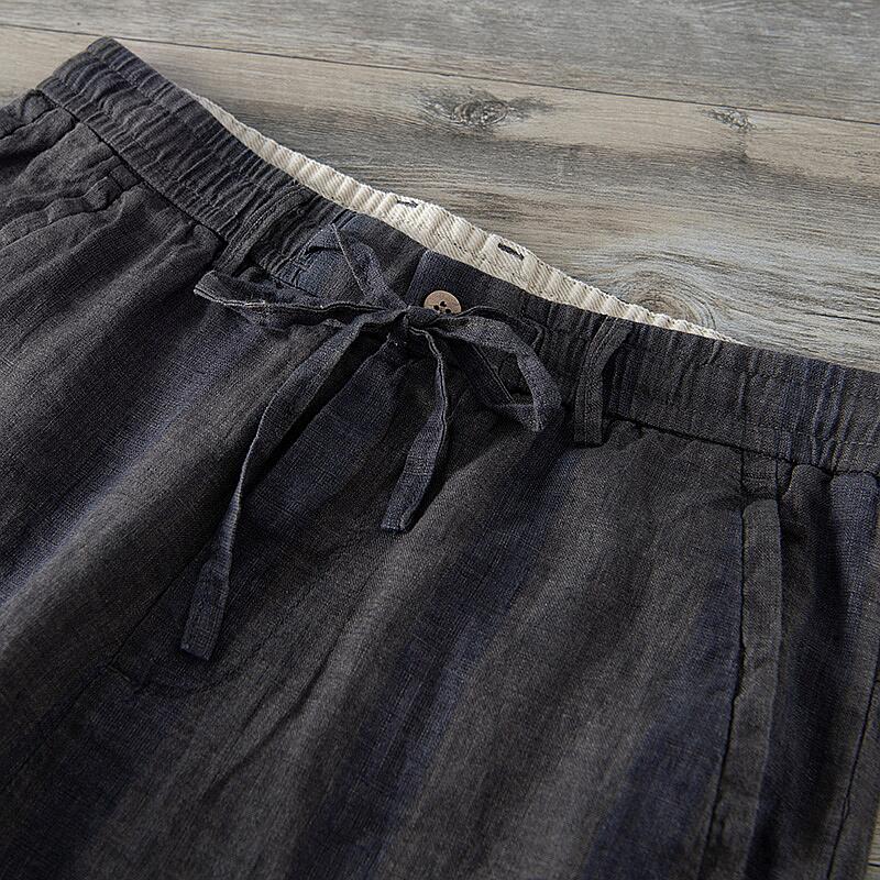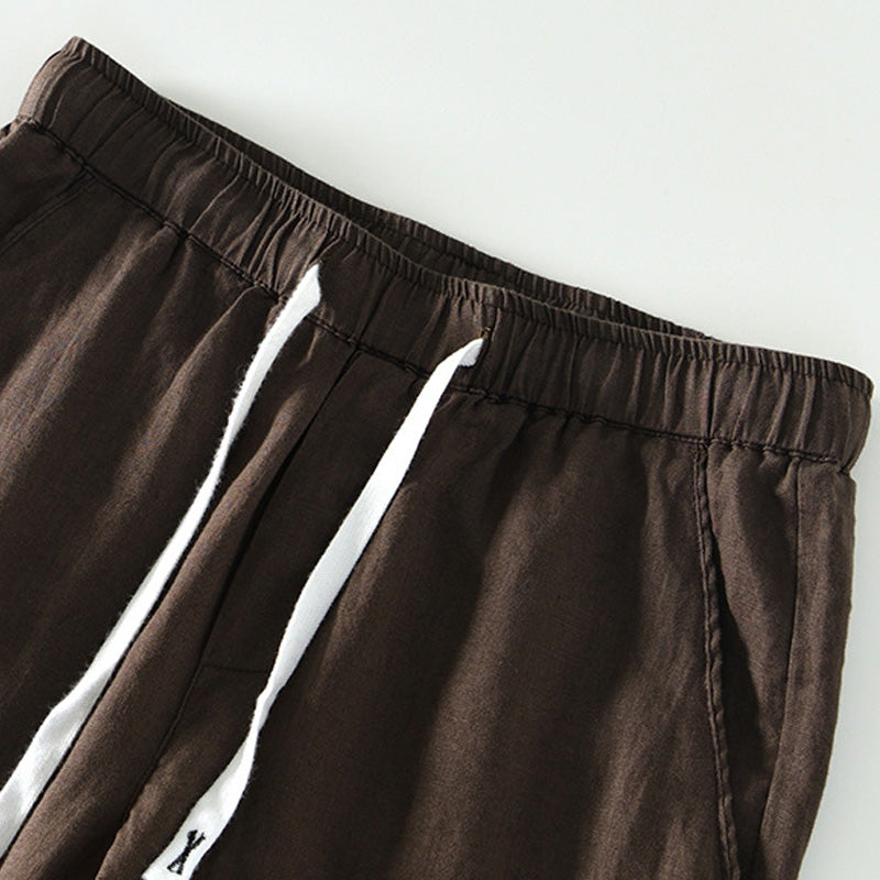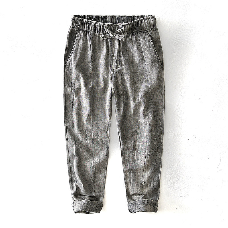 Pure Linen Plain Drawstring Casual Cropped Pants