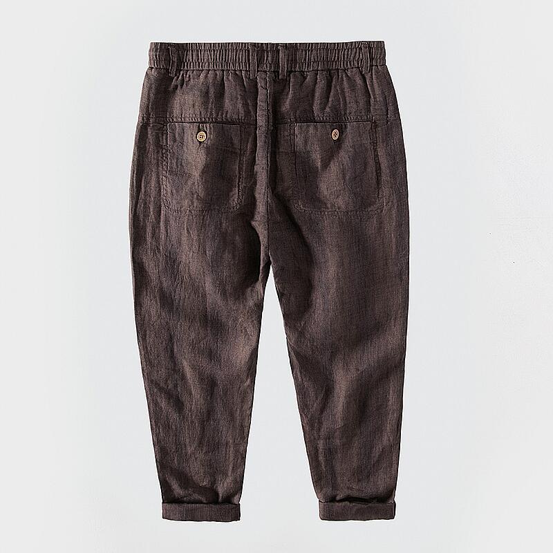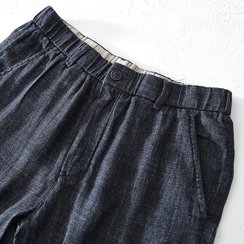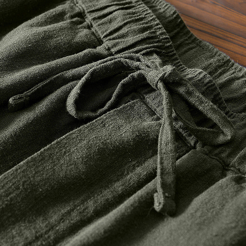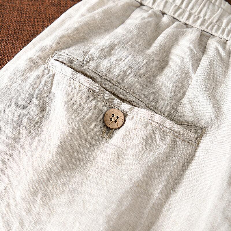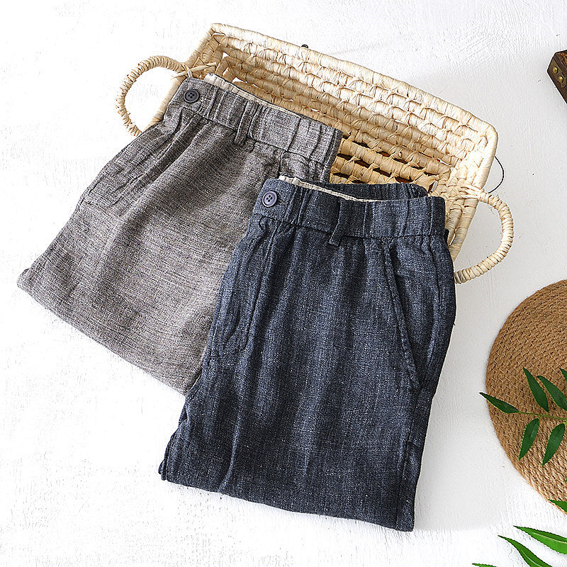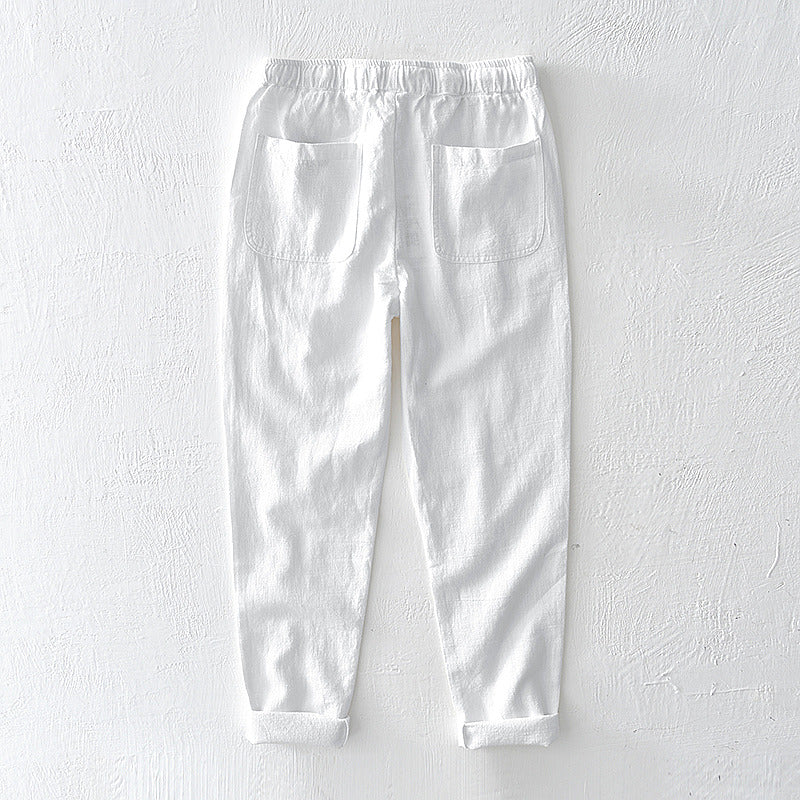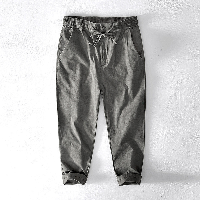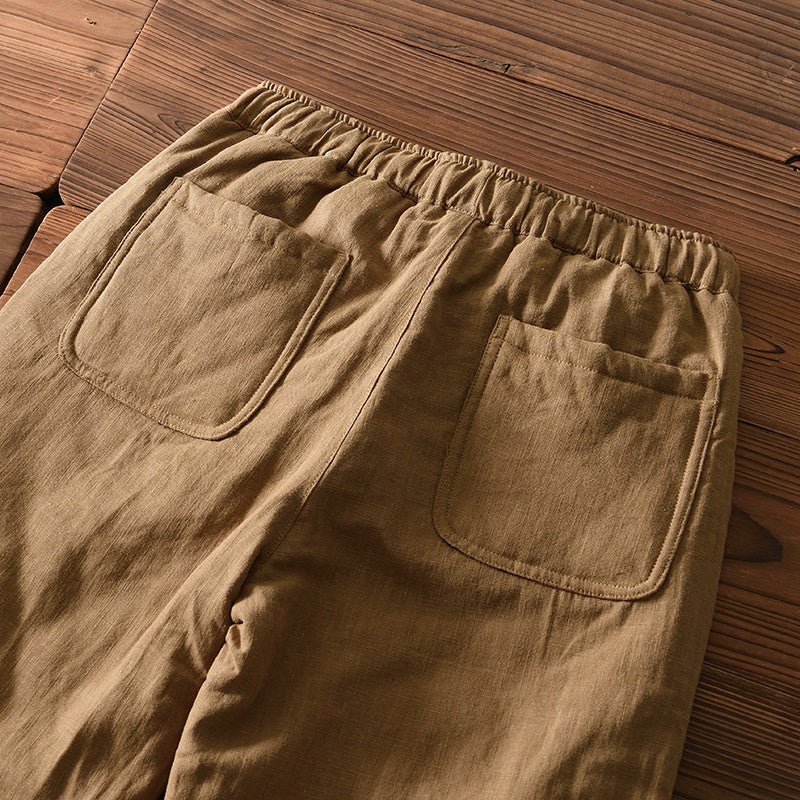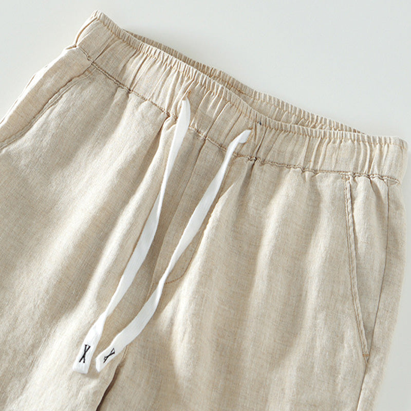 Pure Linen Plain Drawstring Casual Cropped Pants
