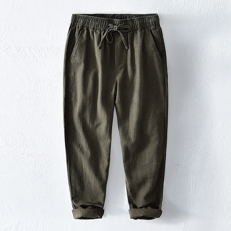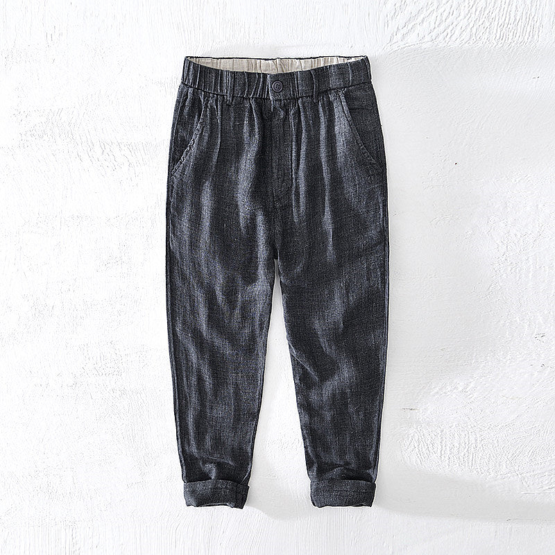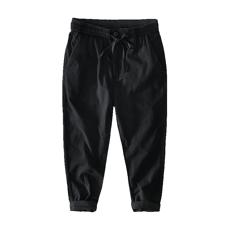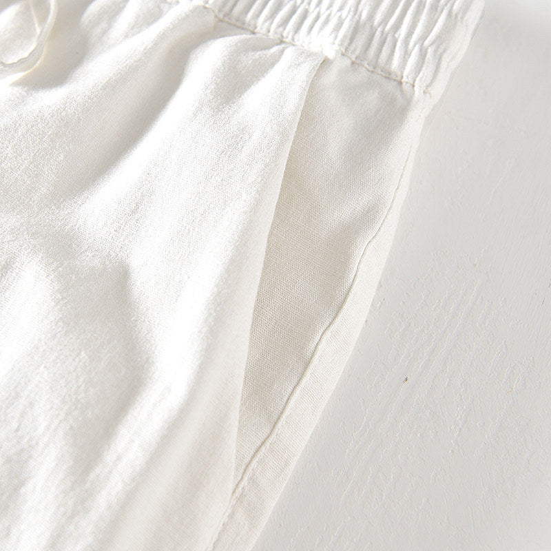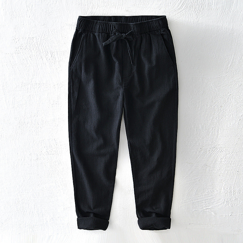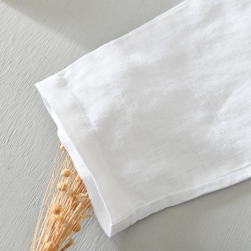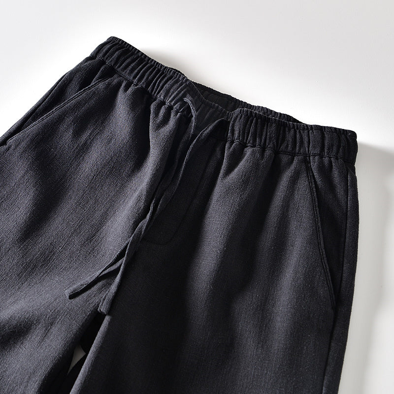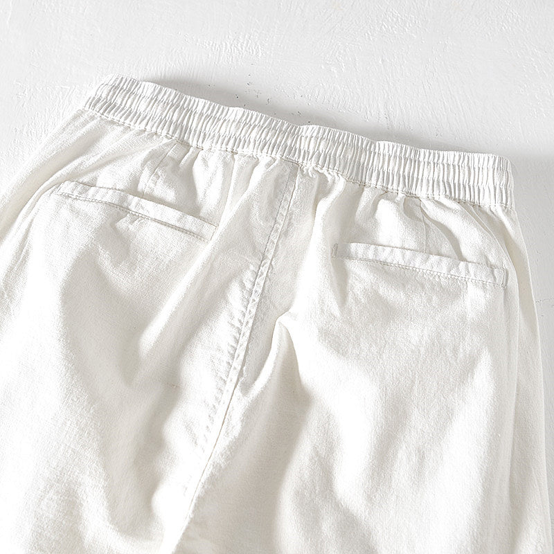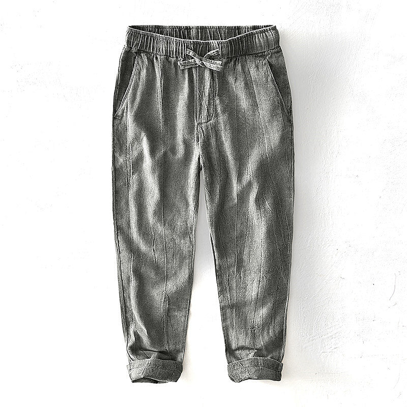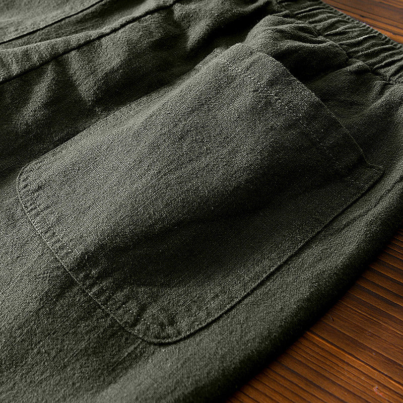 Pure Linen Plain Drawstring Casual Cropped Pants