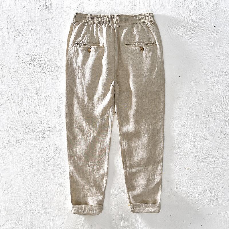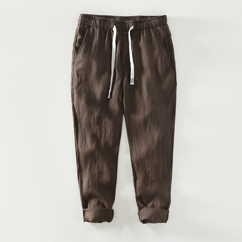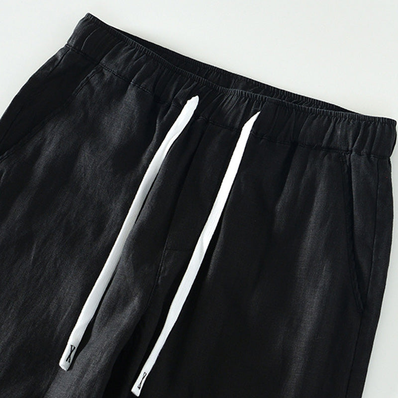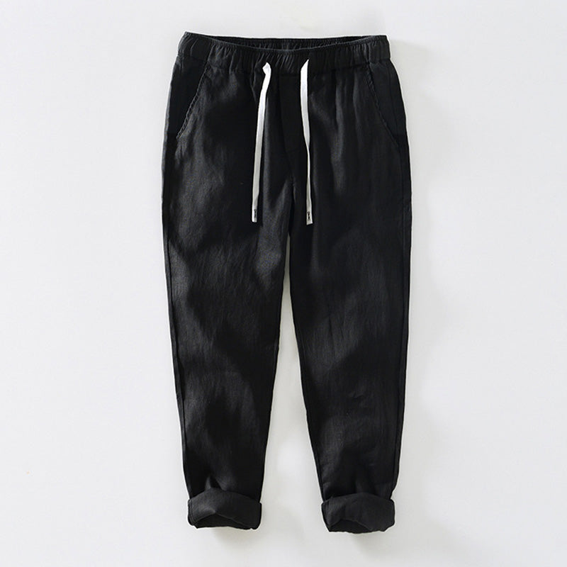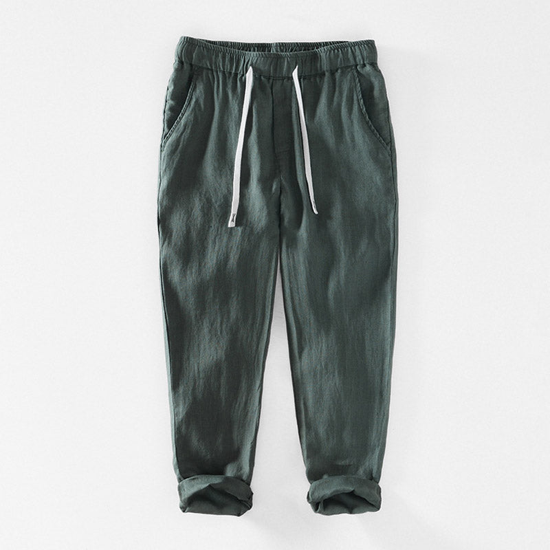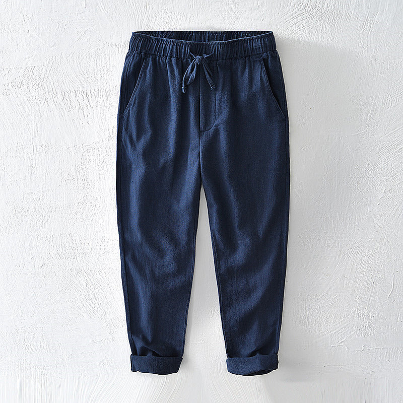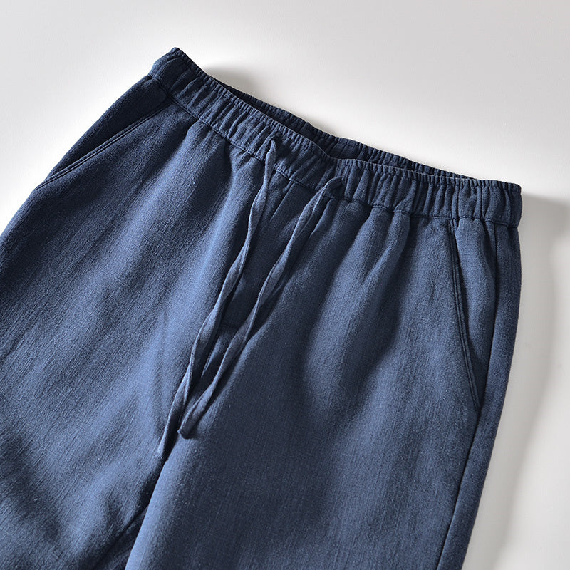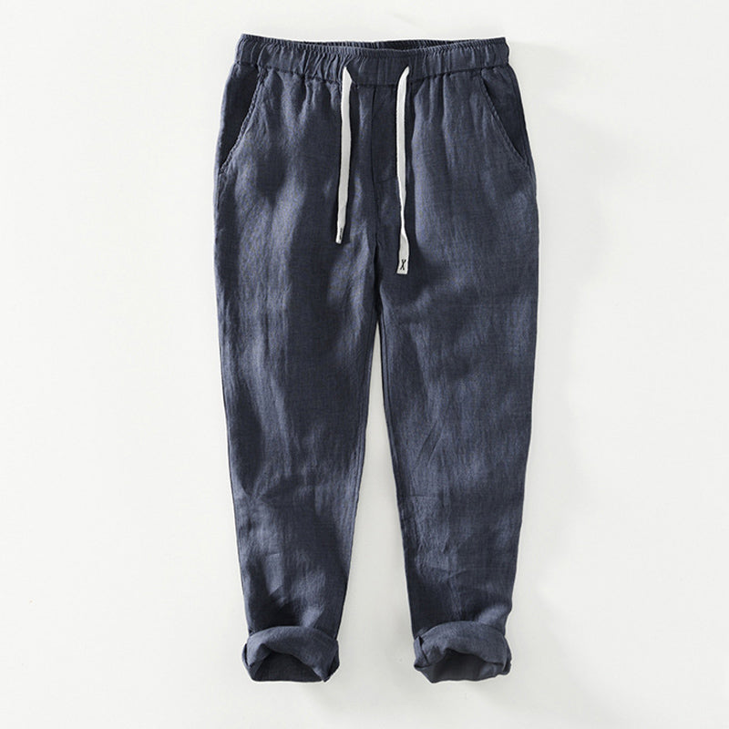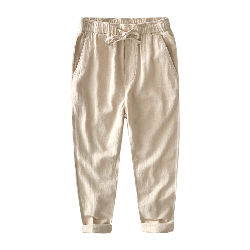Pure Linen Plain Drawstring Casual Cropped Pants